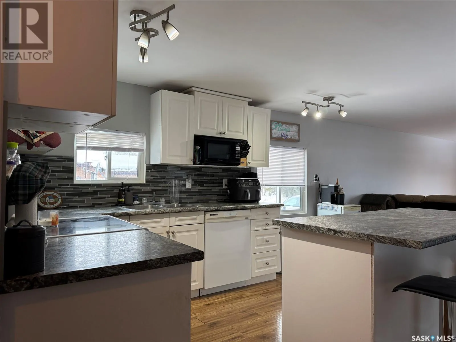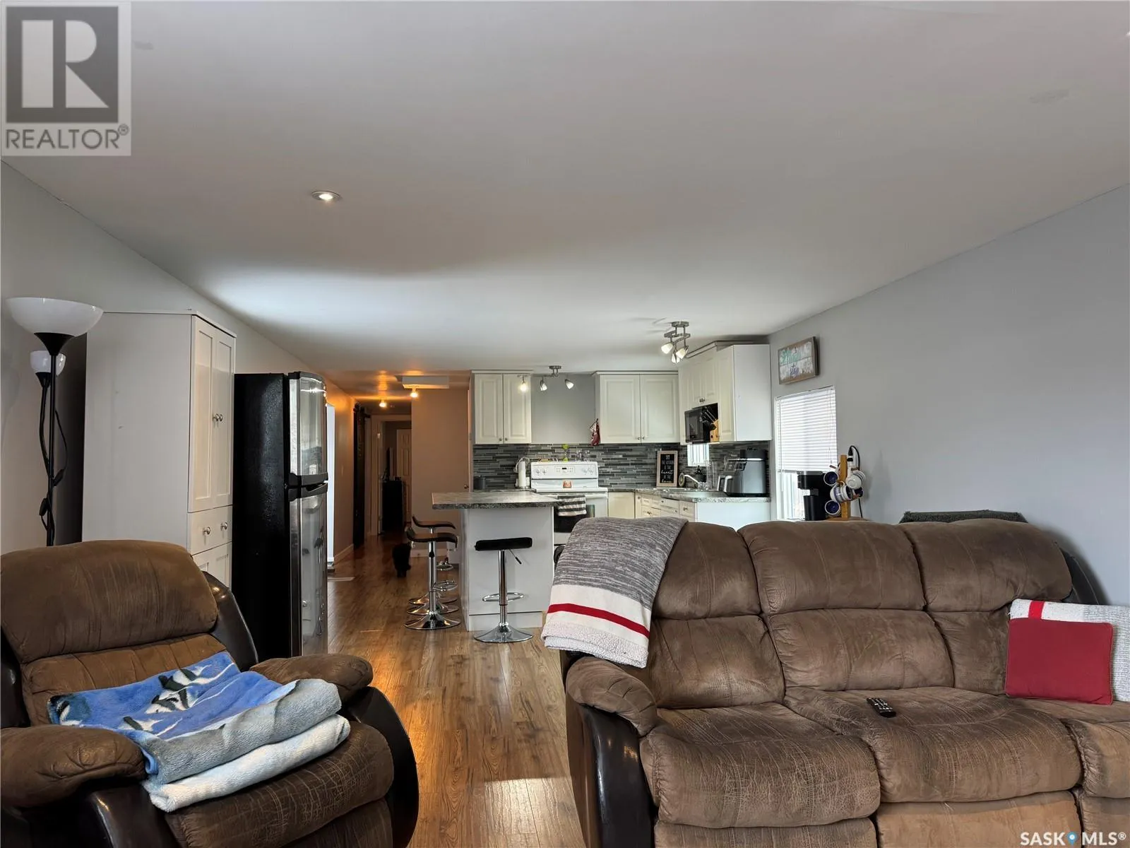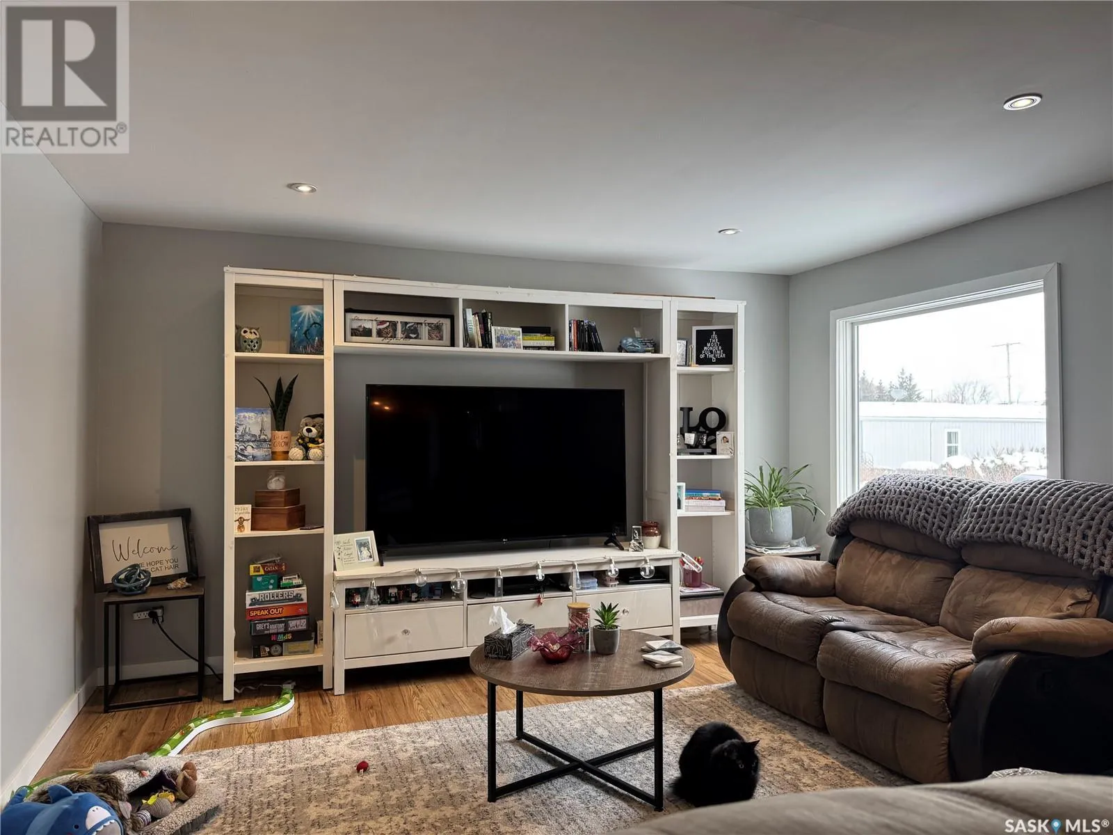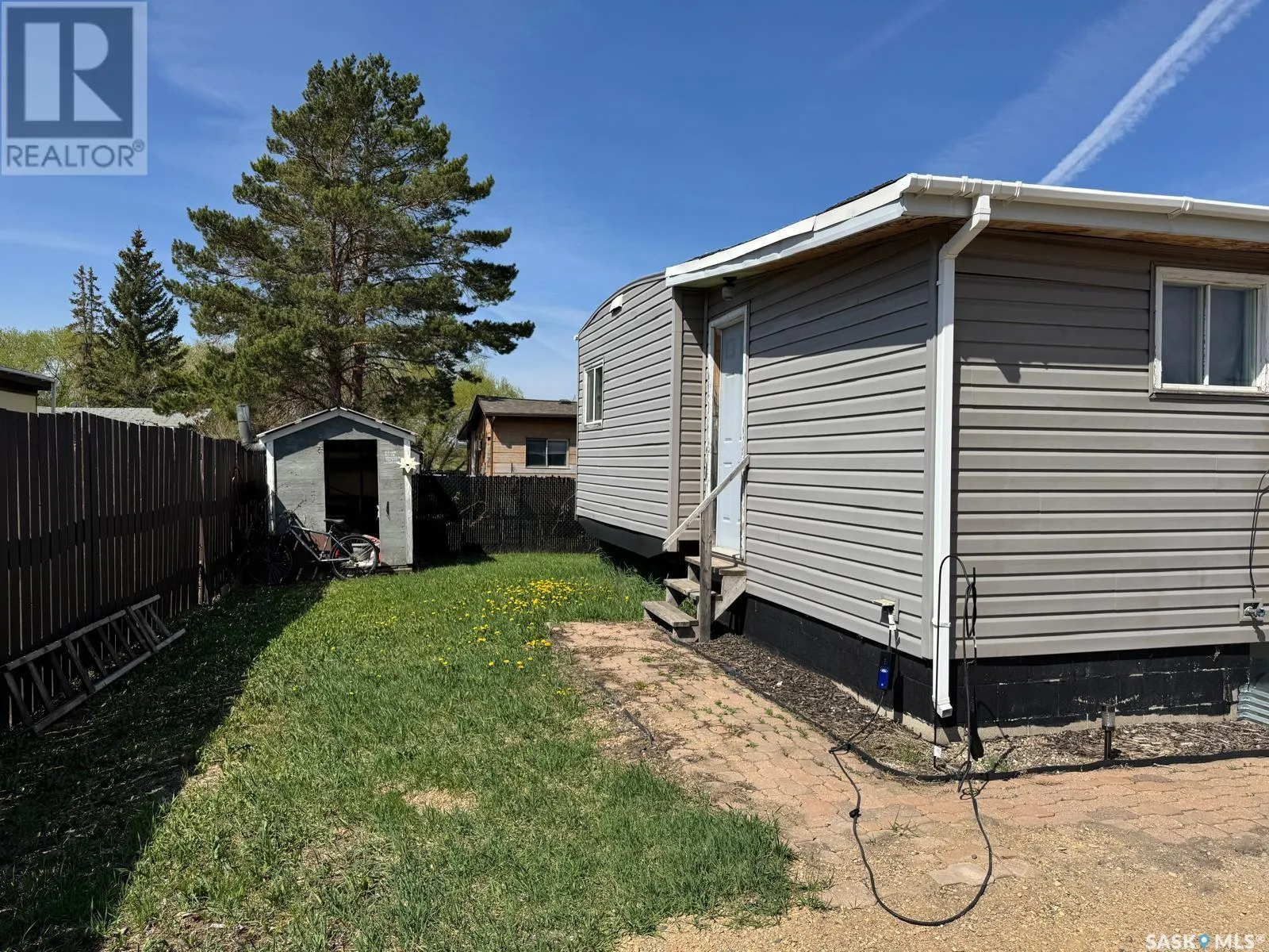 Discover the perfect blend of comfort and convenience in this charming mobile home situated on a spacious corner lot in Wynyard, Saskatchewan. This 2-bedroom 1 bathroom home boasts a large, updated kitchen that flows seamlessly into the sun-filled living room, creating a warm and inviting space to relax and entertain. A generously sized bonus room with its own private outside access adds versatility, whether you need extra living space, a home office, or a hobby room. The home also features a partial unfinished basement, perfect for storage or future development. Step outside onto the sizable front deck, ideal for morning coffee or evening gatherings. The propertyâs prime location near the golf course and high school adds to its appeal, offering a convenient lifestyle with recreational and educational amenities just moments away. Don't miss this opportunity to own a home with room to grow and a location to love. (id:27476)