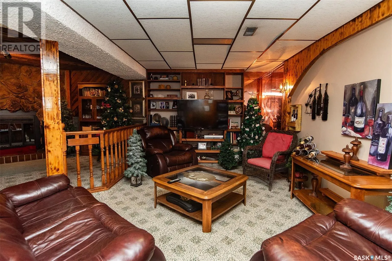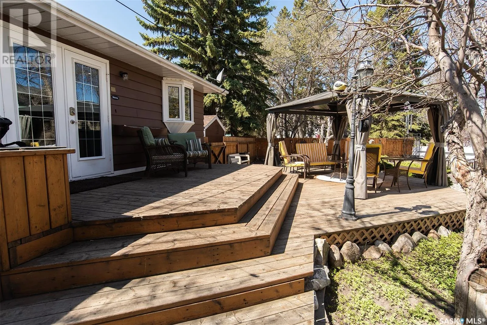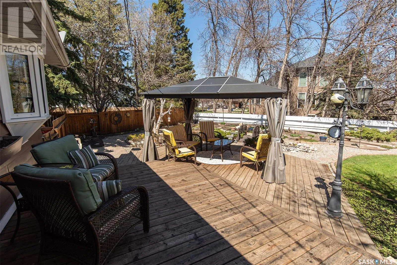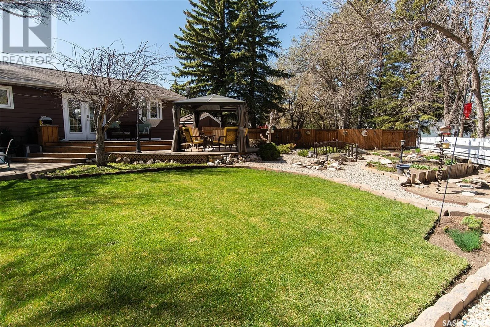 Tucked away in a peaceful cul-de-sac near the scenic coulee, this charming 4-bedroom, 2-bathroom home sits on a spacious 10,070 sq. ft. lot surrounded by mature trees, offering both privacy and natural beauty. The bright and inviting kitchen boasts sleek granite countertops and flows seamlessly to the backyard through garden doors leading to a spacious deckâperfect for outdoor relaxation. The main floor features three comfortable bedrooms and a full bathroom, while the lower level offers a cozy retreat with a wood-burning fireplace, a bar area, and an additional bedroom. The basement also includes a three-piece bathroom with laundry in the utility room, as well as a cold storage space for added convenience. Outside, the beautifully landscaped yard is adorned with trees and perennials, creating a serene and picturesque setting. A wonderful opportunity to enjoy both comfort and tranquility in a prime location. (id:27476)