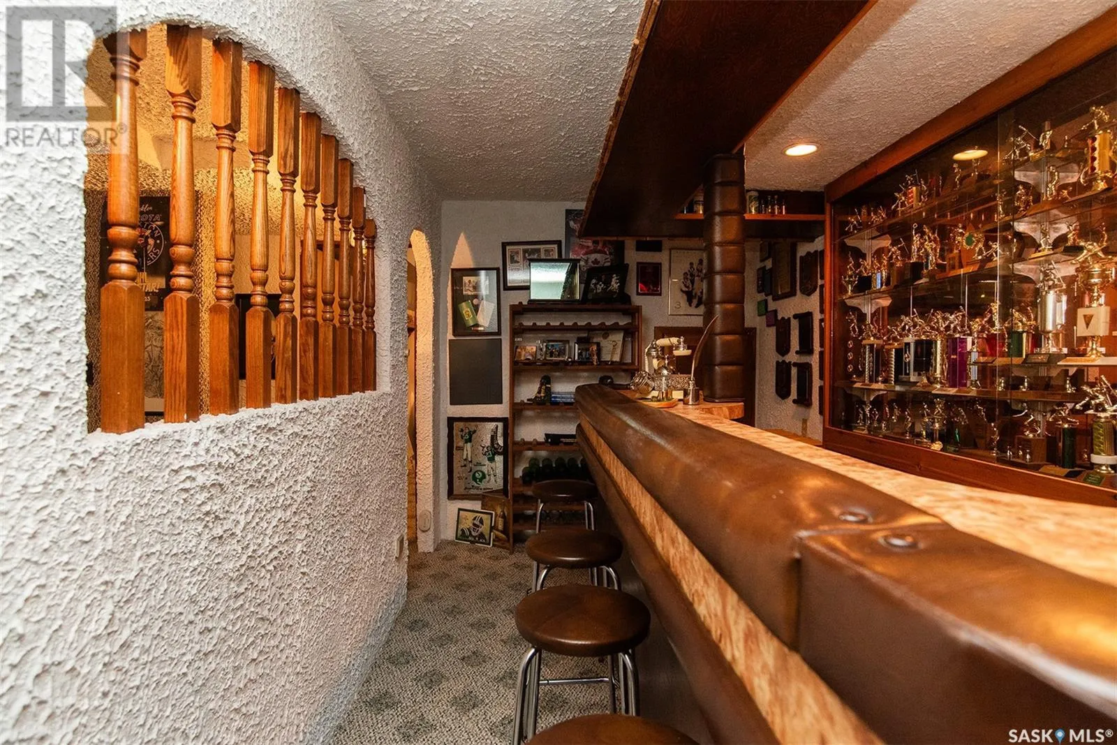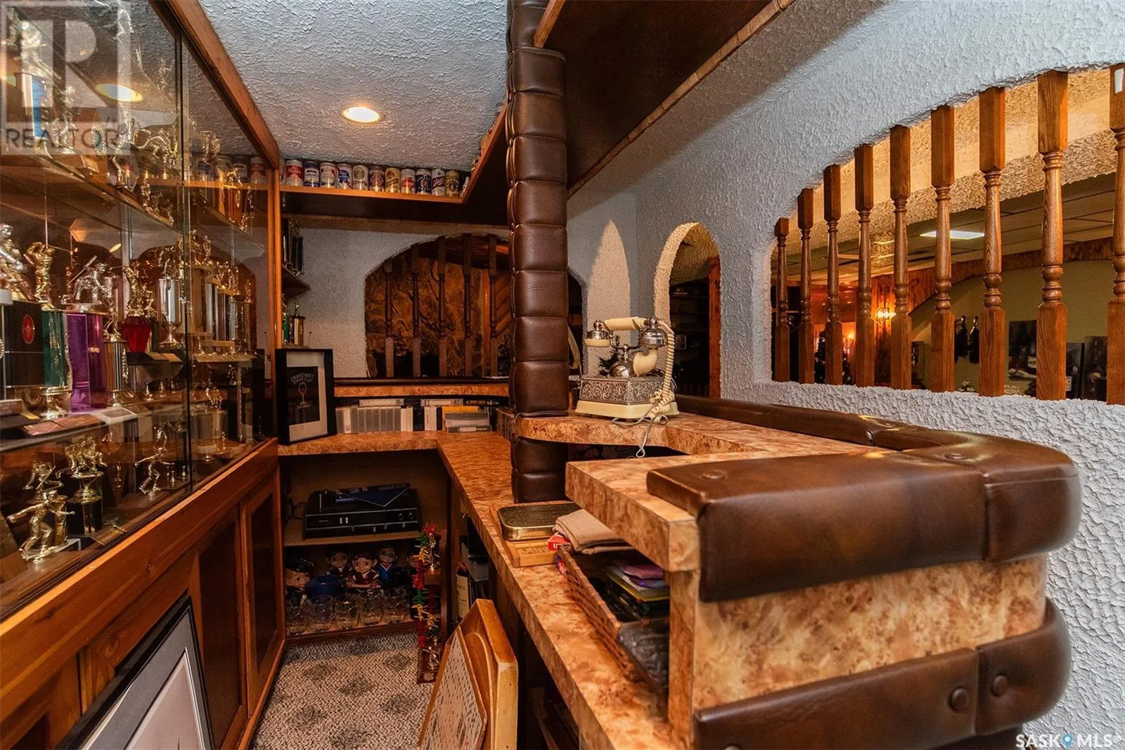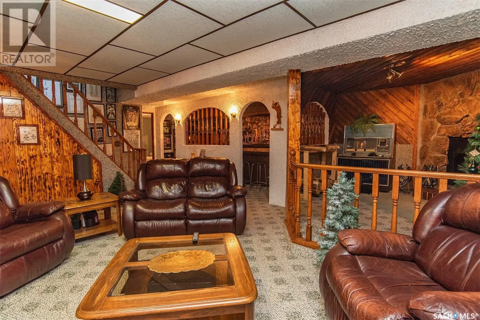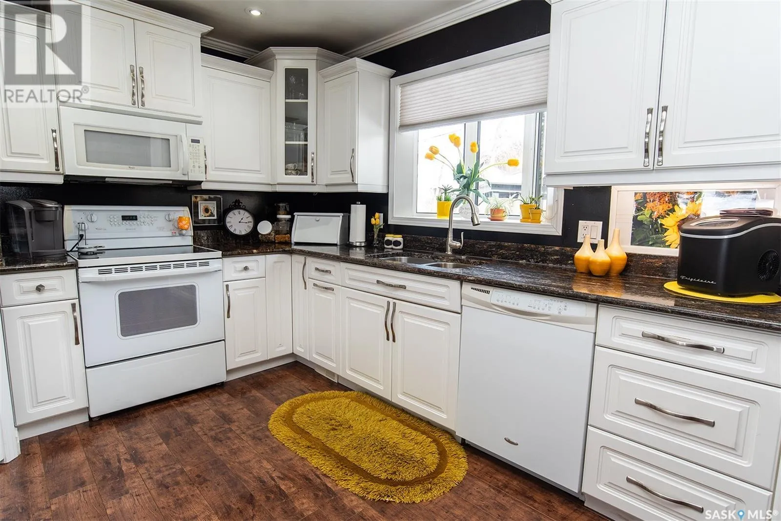 Tucked away in a peaceful cul-de-sac near the scenic coulee, this charming 4-bedroom, 2-bathroom home sits on a spacious 10,070 sq. ft. lot surrounded by mature trees, offering both privacy and natural beauty. The bright and inviting kitchen boasts sleek granite countertops and flows seamlessly to the backyard through garden doors leading to a spacious deckâperfect for outdoor relaxation. The main floor features three comfortable bedrooms and a full bathroom, while the lower level offers a cozy retreat with a wood-burning fireplace, a bar area, and an additional bedroom. The basement also includes a three-piece bathroom with laundry in the utility room, as well as a cold storage space for added convenience. Outside, the beautifully landscaped yard is adorned with trees and perennials, creating a serene and picturesque setting. A wonderful opportunity to enjoy both comfort and tranquility in a prime location. (id:27476)