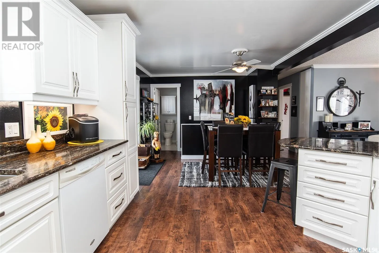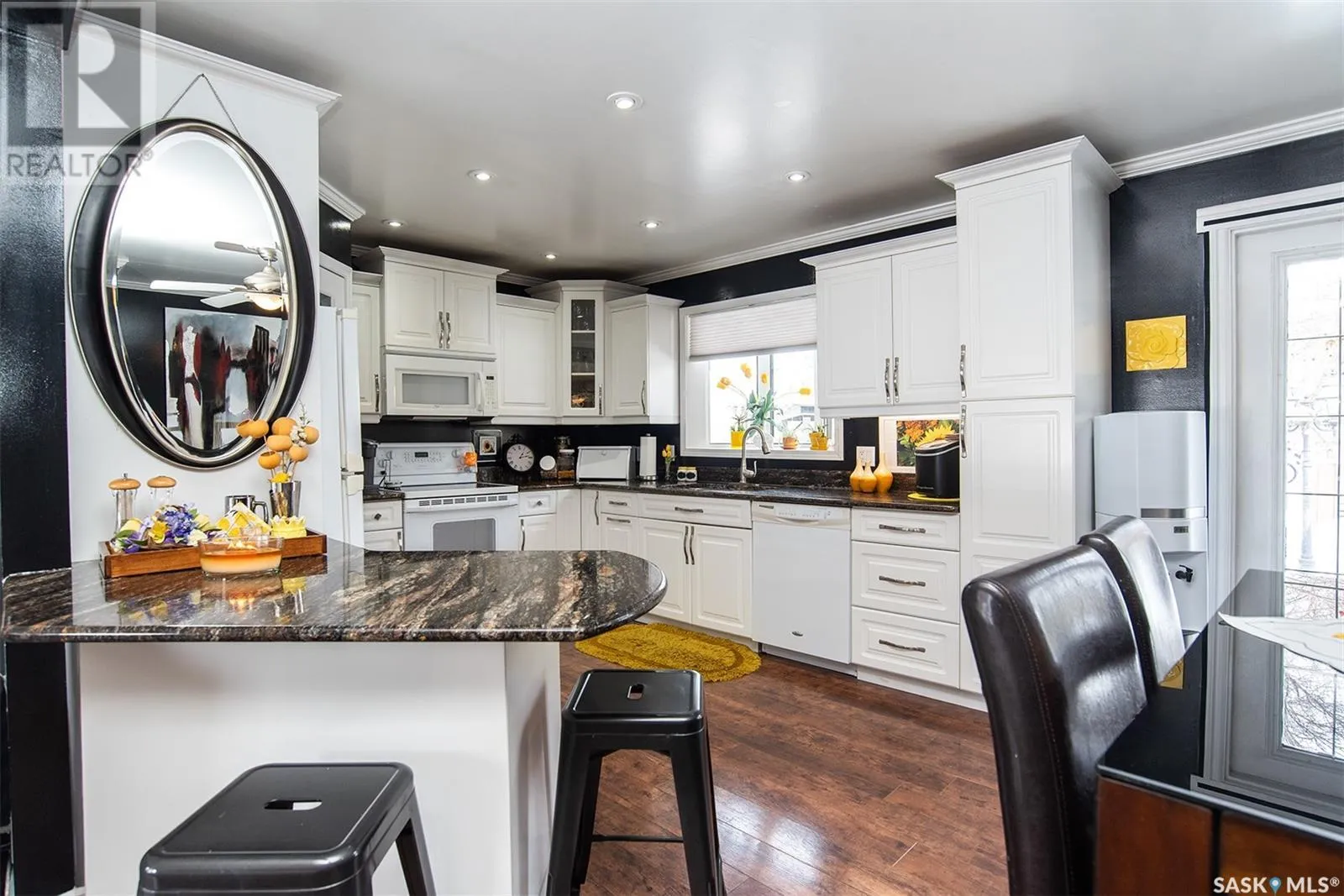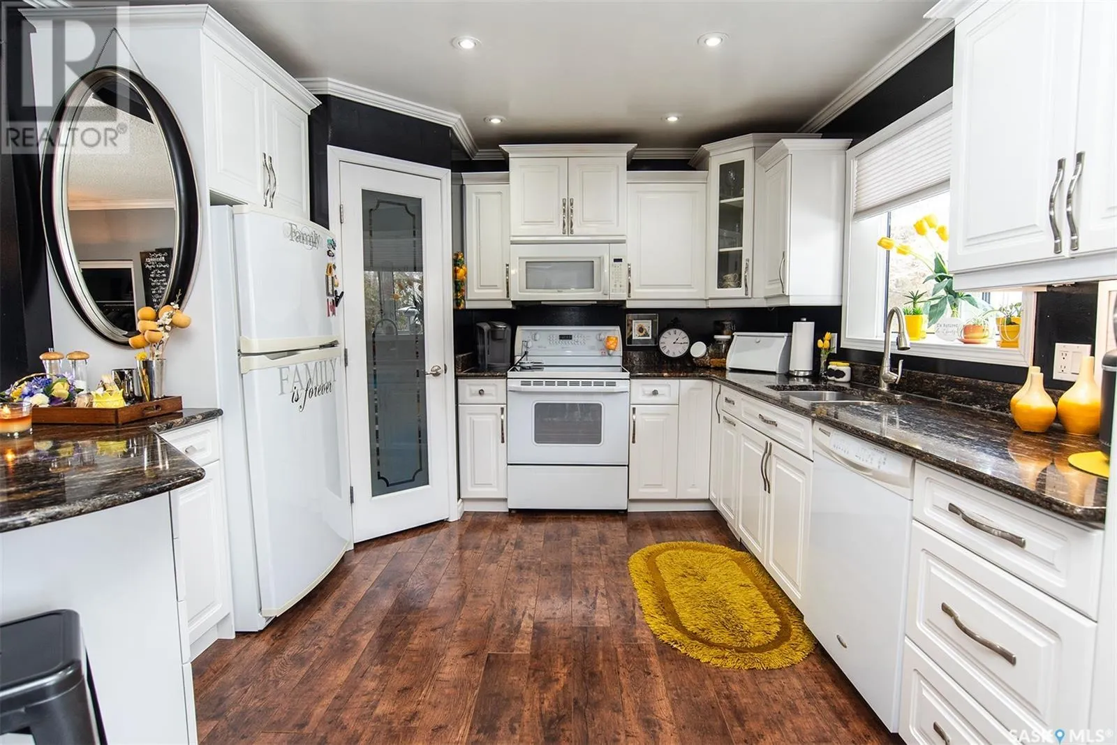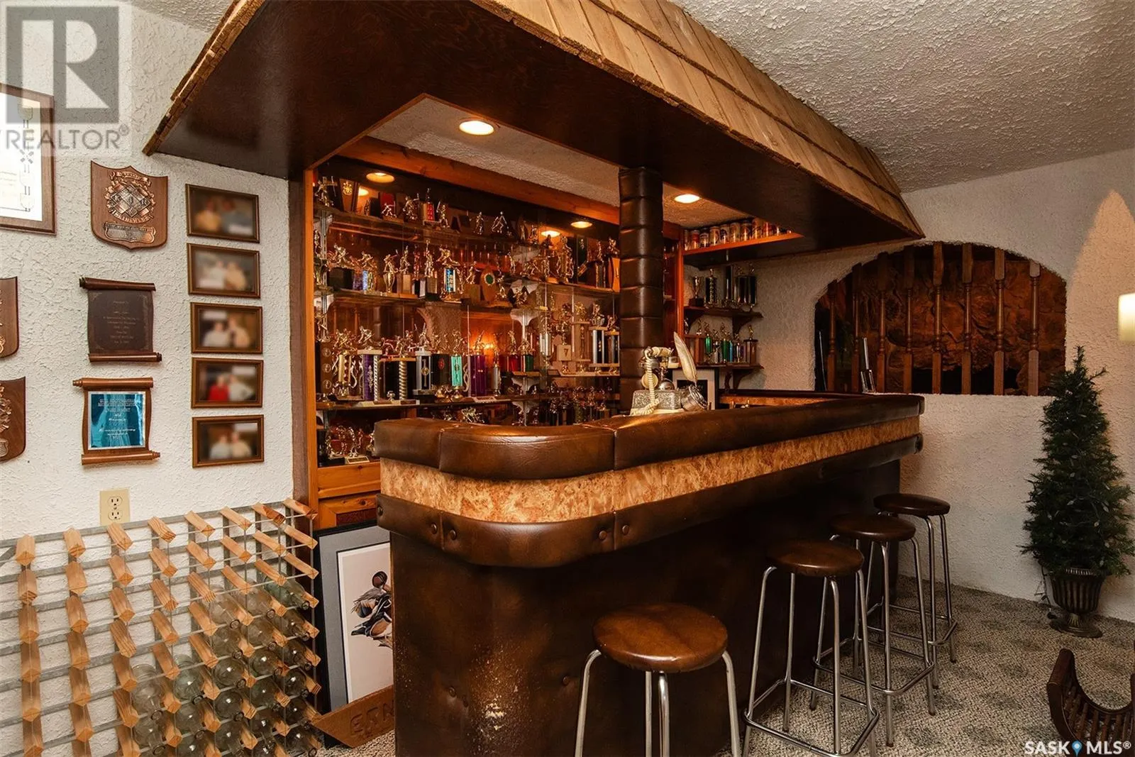 Tucked away in a peaceful cul-de-sac near the scenic coulee, this charming 4-bedroom, 2-bathroom home sits on a spacious 10,070 sq. ft. lot surrounded by mature trees, offering both privacy and natural beauty. The bright and inviting kitchen boasts sleek granite countertops and flows seamlessly to the backyard through garden doors leading to a spacious deckâperfect for outdoor relaxation. The main floor features three comfortable bedrooms and a full bathroom, while the lower level offers a cozy retreat with a wood-burning fireplace, a bar area, and an additional bedroom. The basement also includes a three-piece bathroom with laundry in the utility room, as well as a cold storage space for added convenience. Outside, the beautifully landscaped yard is adorned with trees and perennials, creating a serene and picturesque setting. A wonderful opportunity to enjoy both comfort and tranquility in a prime location. (id:27476)