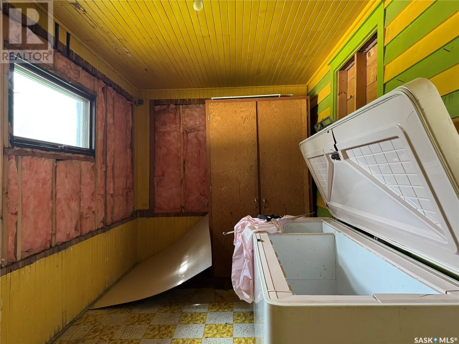 Welcome to 218 4th Street East in Wynyardâa warm and inviting 3-bedroom, 1-bath bungalow nestled in one of the townâs most convenient and family-friendly locations. This charming home sits directly across from the community swimming pool and is just steps from a beautiful park, the elementary school, and downtown amenities. Inside, youâll find a spacious and sun-filled living room with newer windows and soaring 9-foot ceilings, creating a bright and airy atmosphere. The practical layout includes three bedrooms, one of which features in-room laundry, making everyday living a breeze. A covered patio at the back overlooks a fully fenced yard with a lovely garden space, perfect for relaxing or entertaining. With a partial basement ideal for storage and a setting that blends small-town serenity with unbeatable walkability, this home offers exceptional value and timeless appeal. (id:27476)