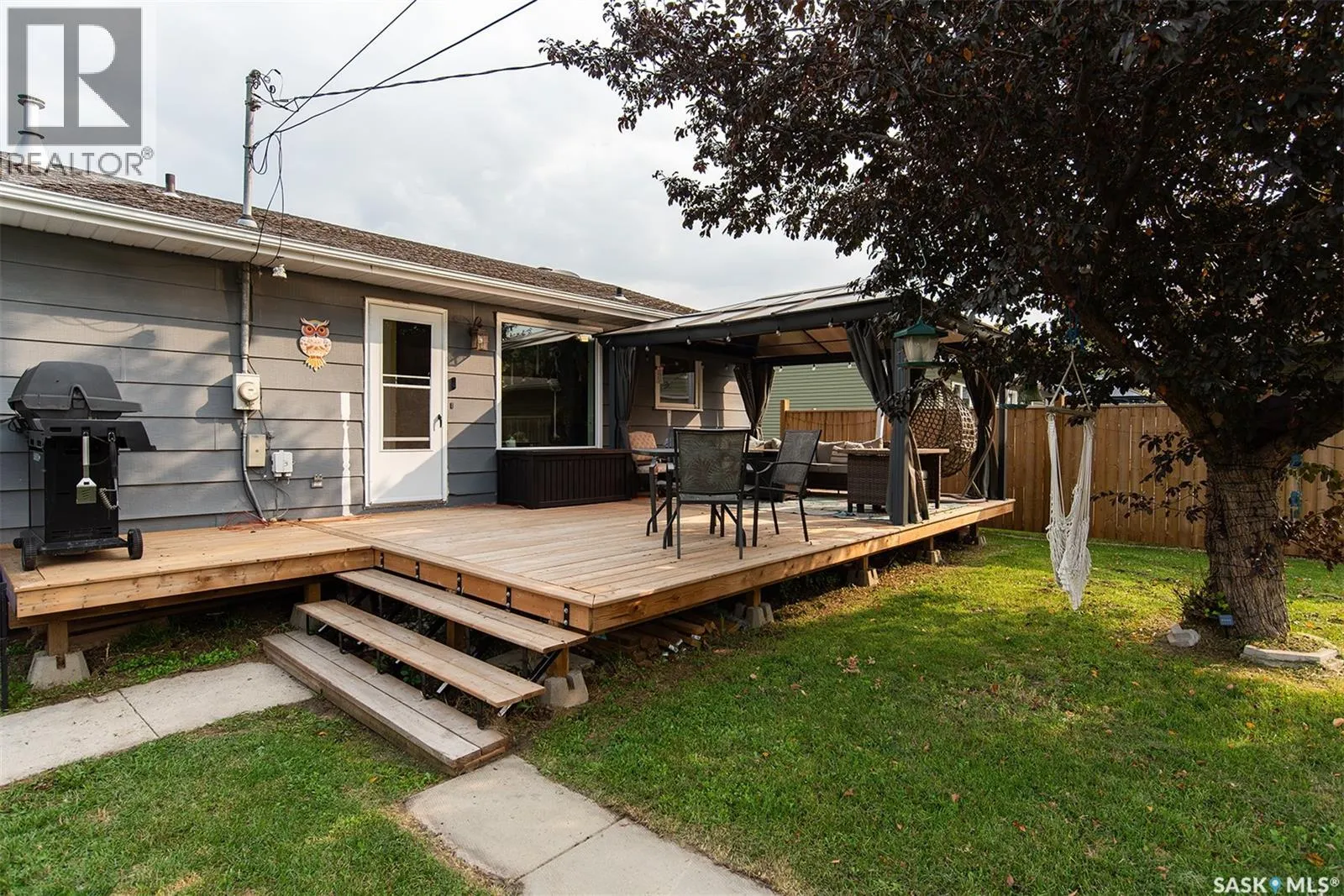 This well-maintained Wynyard home offers space, function, and thoughtful updates throughout. The main floor features three comfortable bedrooms, including a primary with its own 2-piece ensuite, plus a full main bathroom. The living room is bright and welcoming, complete with a wood-burning fireplace, while the kitchen offers plenty of cabinetry and natural light. Off the back entry is a convenient walk-in closet for added storage. The basement expands your living space with a large family room and bar area, a 2-piece bathroom, and a bedroom (no window), along with a spacious laundry/utility room, cold room, and even more storage. Step outside to a 24x14 deck with a gazebo â the perfect spot to relax or entertain. Additional highlights include a 20x26 attached garage, some updated windows, bathrooms, flooring, furnace, and water heater and more. (id:27476)