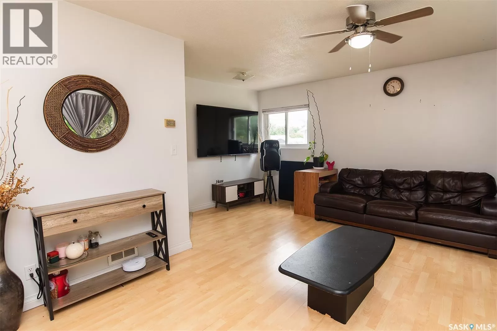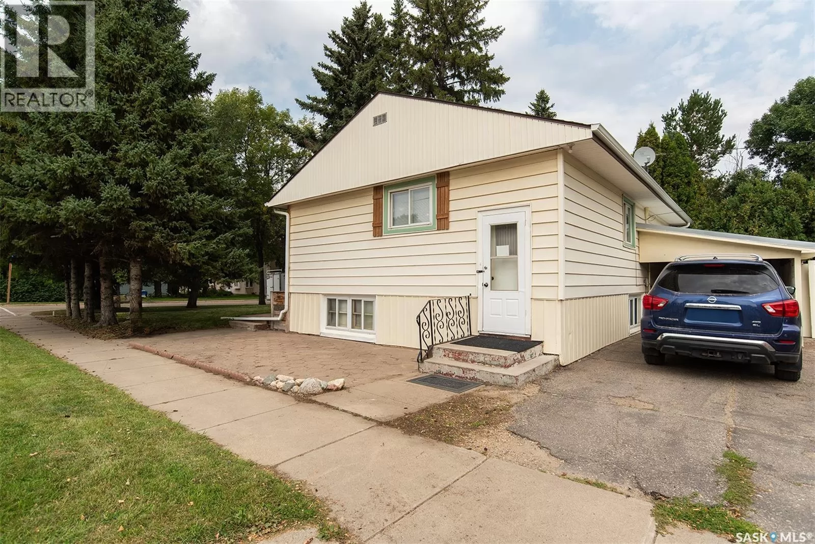 Welcome to 316 2nd Street East, ideally situated just one block from the elementary school, curling rink, swimming pool, park, Sofina Foods, and Wynyard's vibrant downtown core. This home offers incredible convenience and a great layout for families or investors alike. Step inside to a bright and inviting main floor featuring a cozy living room with large windows and access to a quaint front deck â the perfect place to enjoy your morning coffee. The kitchen is cute and functional, and two spacious bedrooms and a full 4-piece bathroom complete the main level. The basement adds valuable living space with two additional bedrooms, a 3-piece bathroom, and a comfortable living room â ideal for guests, teenagers, or a home office setup. Outside, youâll appreciate the corner lot location, shaded by mature trees in the front yard. A portion of the backyard is fenced for privacy and includes a fire pit area, perfect for summer evenings. Thereâs also a carport, a storage shed, and ample yard space to enjoy. Whether you're looking to get into your first home, downsize, or invest, this well-located Wynyard property offers great potential in a fantastic location. (id:27476)