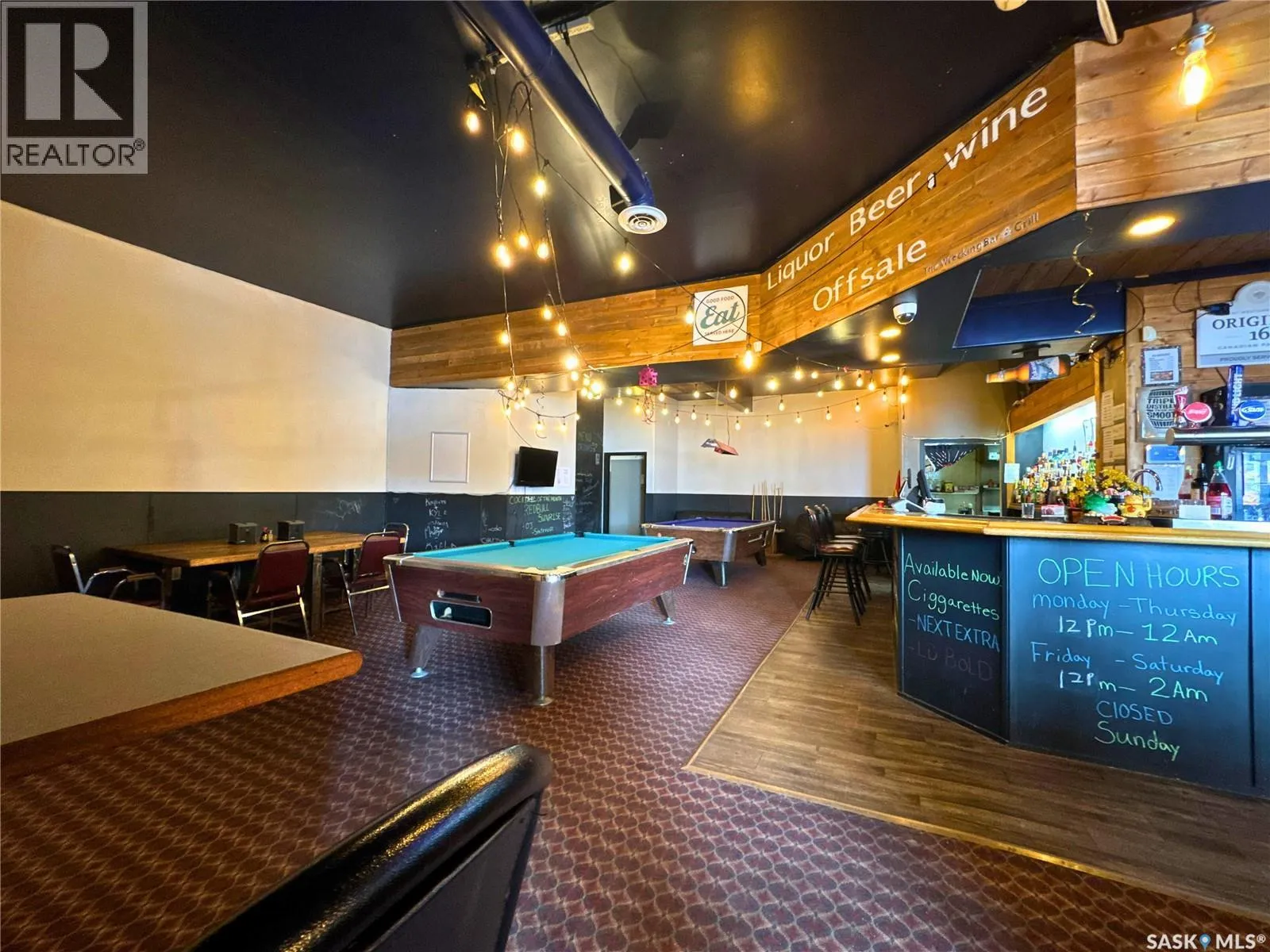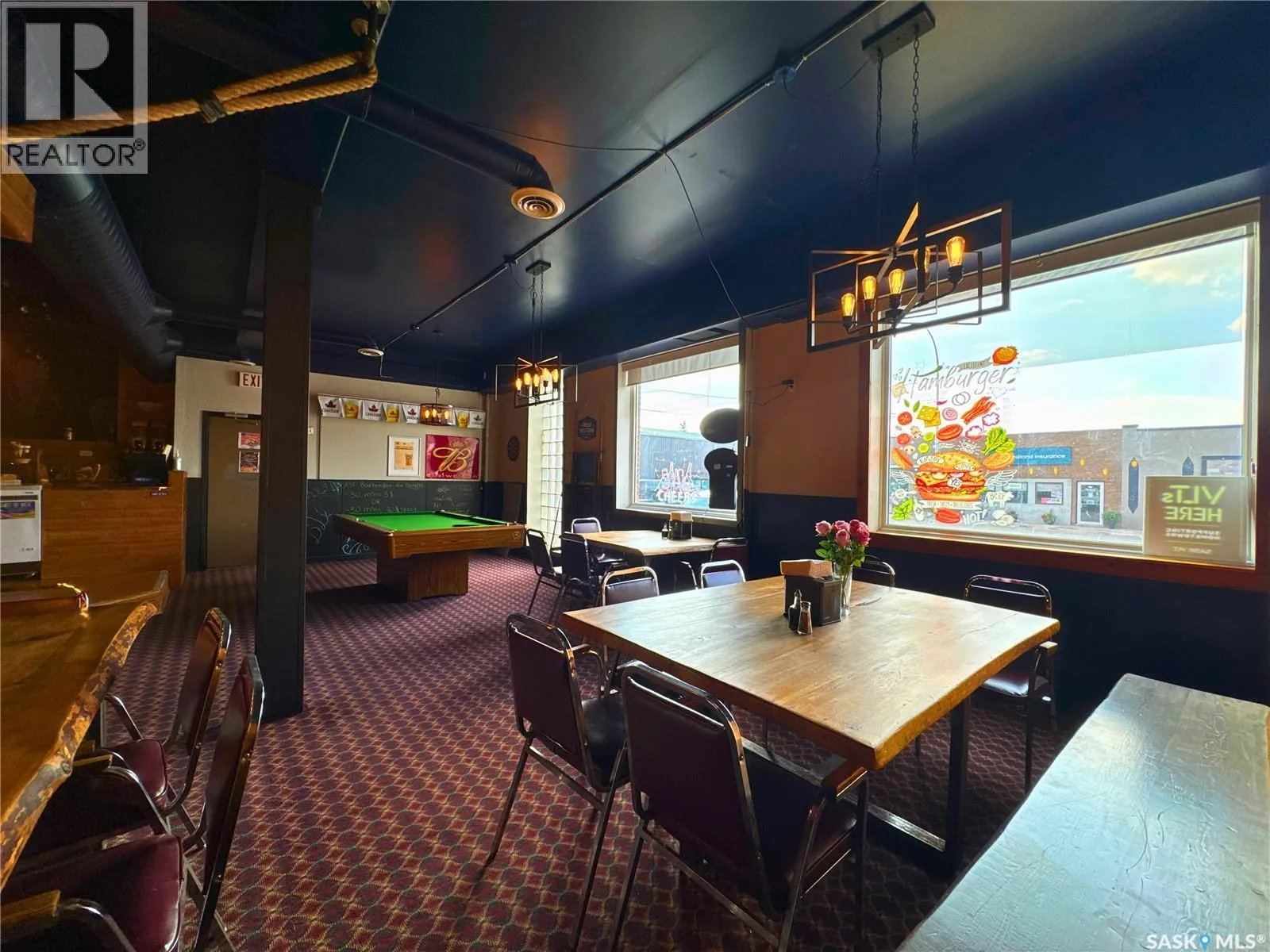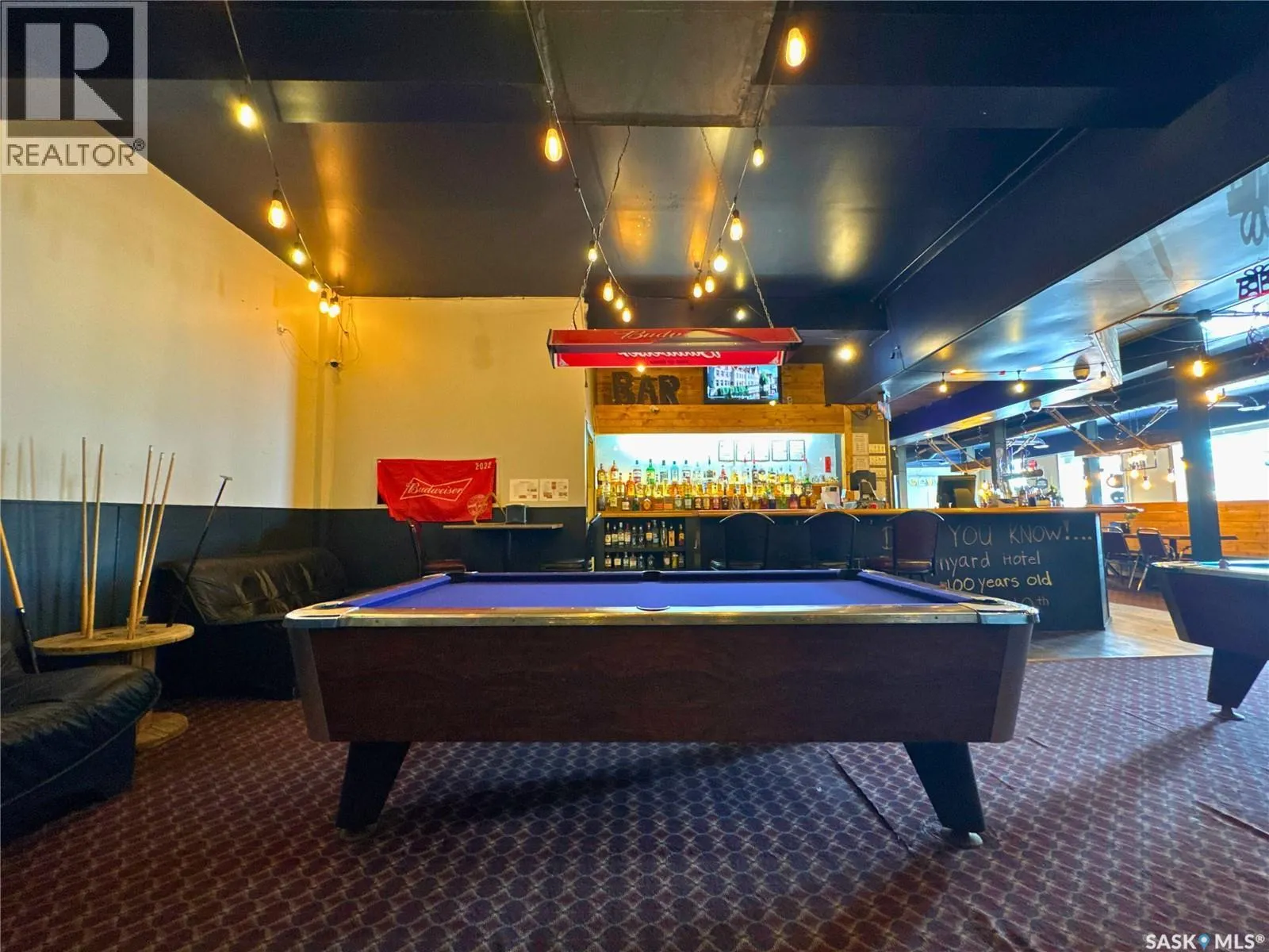 Excellent opportunity to own a landmark business and building in the thriving community of Wynyard, Saskatchewan - a full-service town with a high school, regional college, golf course, rink, hospital, banks, and automotive services. The property offers 11,252 sq.ft. of space on a concrete foundation with a durable brick exterior. The main floor features a fully licensed restaurant and bar, an ice cream/slush area (not in full operation, providing great potential for an additional revenue stream), 10 VLTs offering steady, low-maintenance income, ATM, and permits for restaurant liquor and tobacco sales. A smart home system controls security, lighting, heating, and cooling. The second floor includes a long-term tenant in a 2-bedroom suite with kitchen and 4-piece bath, while the remaining area could be developed into up to 12 guest rooms, 4 bathrooms, and 1 laundry room. The third floor offers an ownerâs suite with living, kitchen, dining, one bedroom, and 4-piece bath, plus a move-in-ready managerâs bachelor suite with kitchen and 3-piece bath; seven additional rooms provide renovation potential. The main floor is heated with a floor unit and A/C, and the upper floors with hot-water heating. Upgrades completed around 2016 include washroom and kitchen renovations, walk-in cooler, reverse osmosis system, modern lighting, décor updates, and fresh finishes throughout. A rare chance to own a versatile, income-producing property with room to grow in the heart of Wynyard. (id:27476)