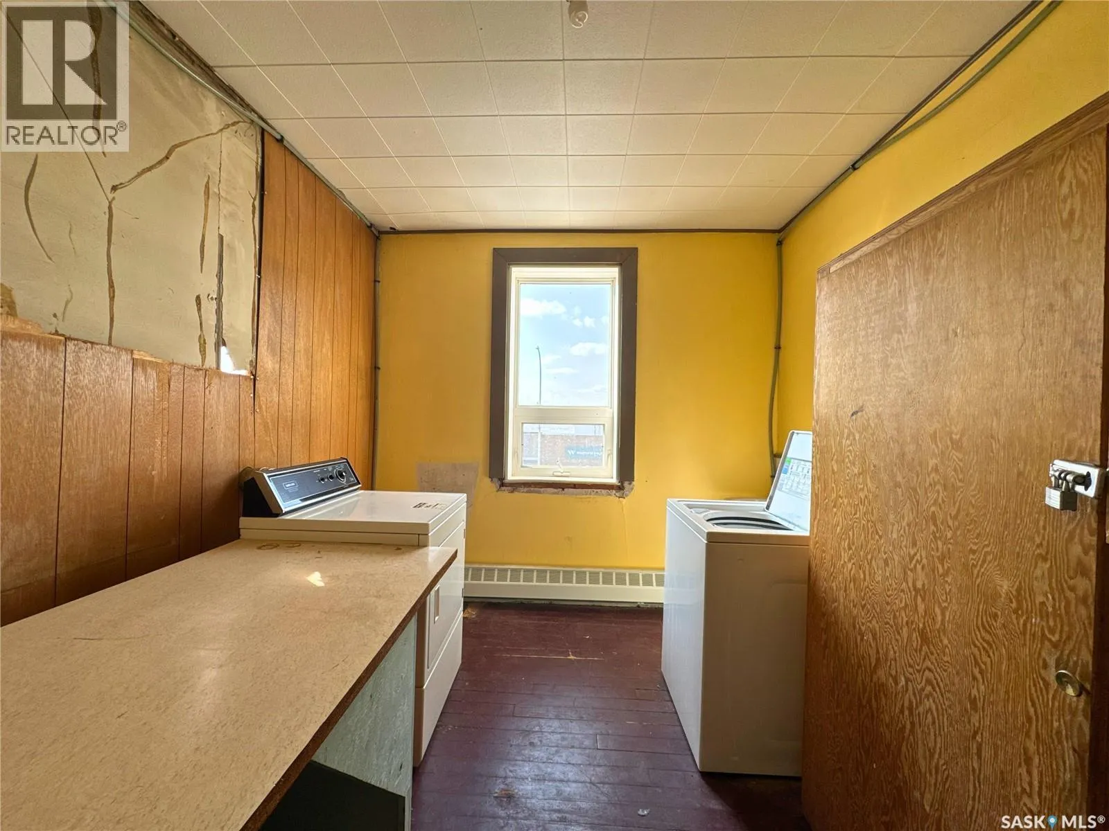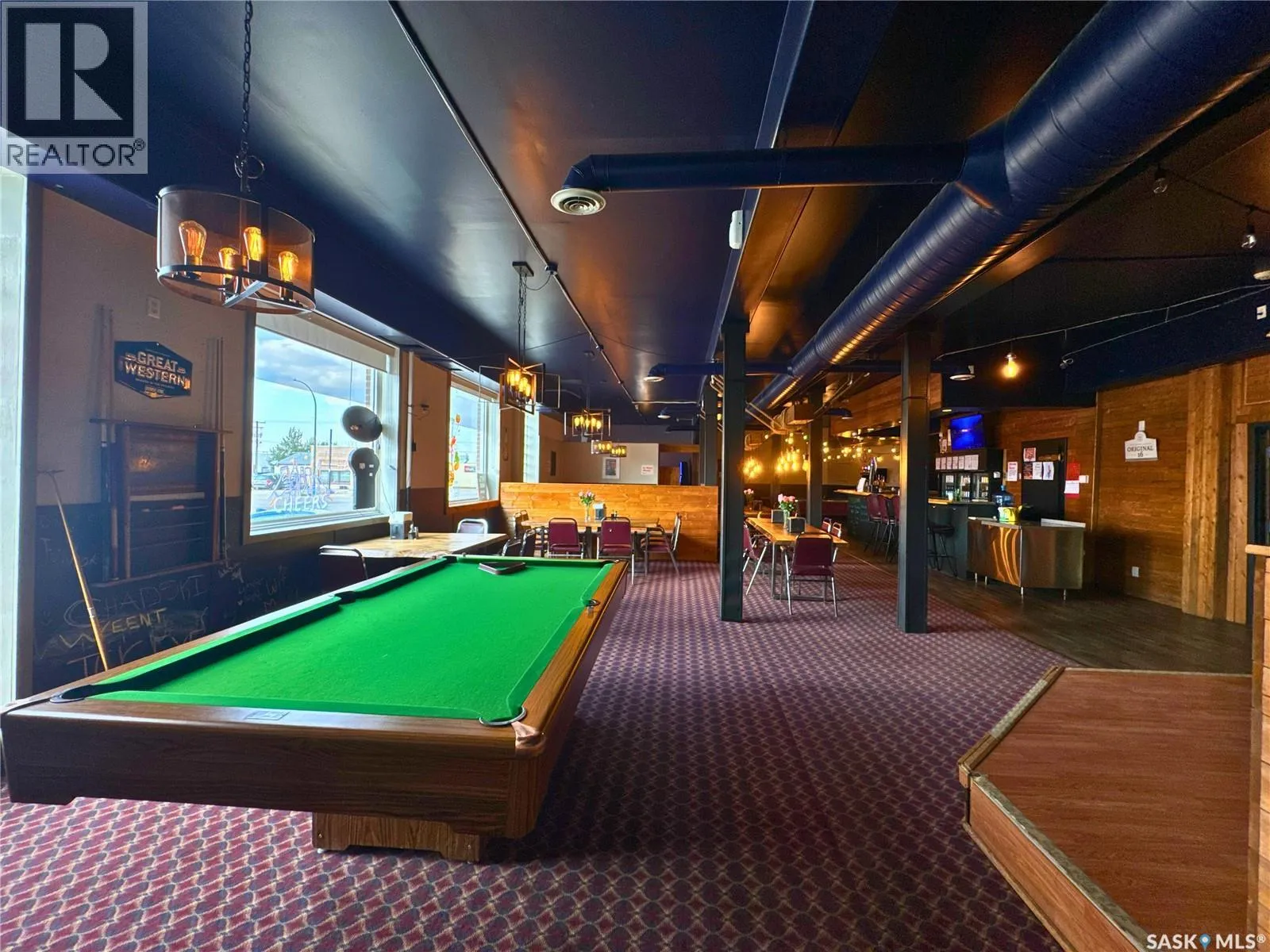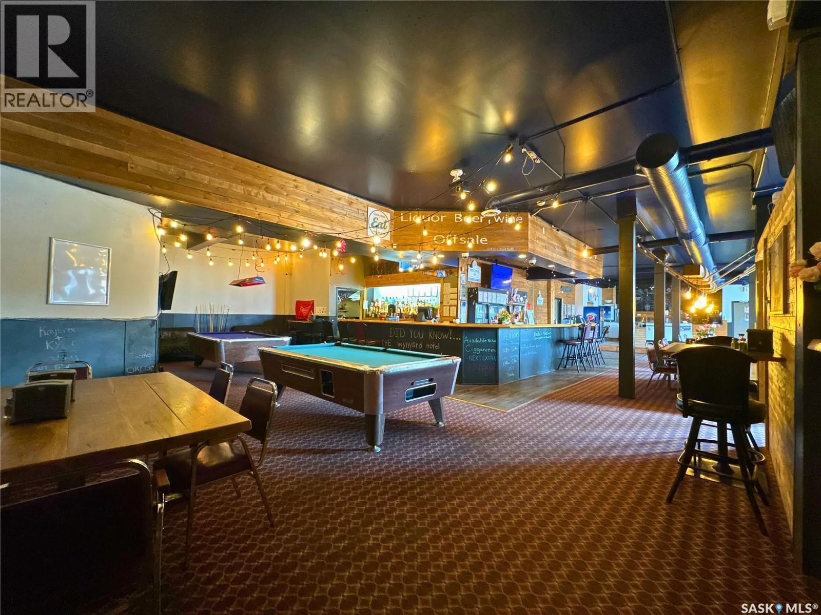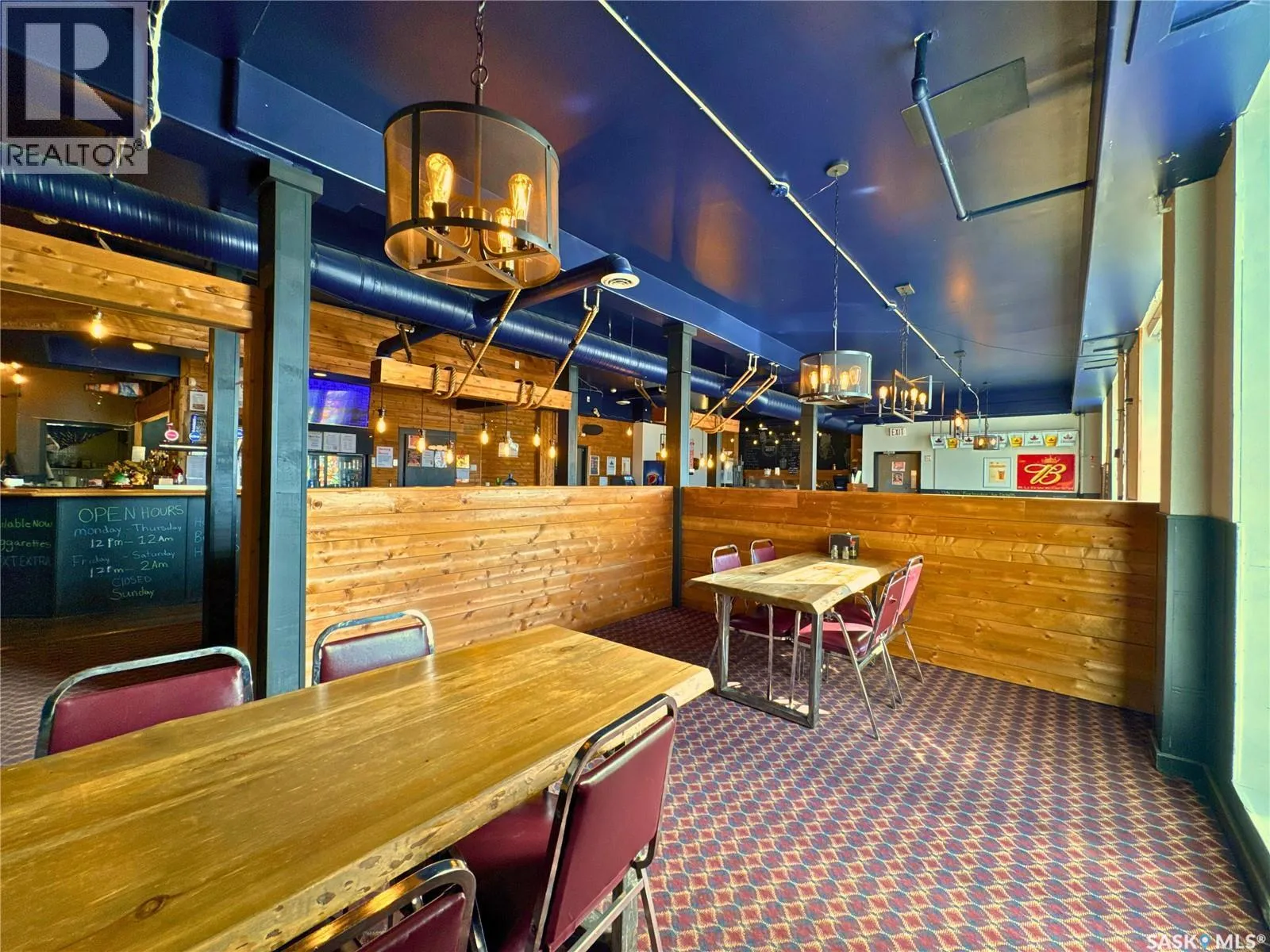 Excellent opportunity to own a landmark business and building in the thriving community of Wynyard, Saskatchewan - a full-service town with a high school, regional college, golf course, rink, hospital, banks, and automotive services. The property offers 11,252 sq.ft. of space on a concrete foundation with a durable brick exterior. The main floor features a fully licensed restaurant and bar, an ice cream/slush area (not in full operation, providing great potential for an additional revenue stream), 10 VLTs offering steady, low-maintenance income, ATM, and permits for restaurant liquor and tobacco sales. A smart home system controls security, lighting, heating, and cooling. The second floor includes a long-term tenant in a 2-bedroom suite with kitchen and 4-piece bath, while the remaining area could be developed into up to 12 guest rooms, 4 bathrooms, and 1 laundry room. The third floor offers an ownerâs suite with living, kitchen, dining, one bedroom, and 4-piece bath, plus a move-in-ready managerâs bachelor suite with kitchen and 3-piece bath; seven additional rooms provide renovation potential. The main floor is heated with a floor unit and A/C, and the upper floors with hot-water heating. Upgrades completed around 2016 include washroom and kitchen renovations, walk-in cooler, reverse osmosis system, modern lighting, décor updates, and fresh finishes throughout. A rare chance to own a versatile, income-producing property with room to grow in the heart of Wynyard. (id:27476)
