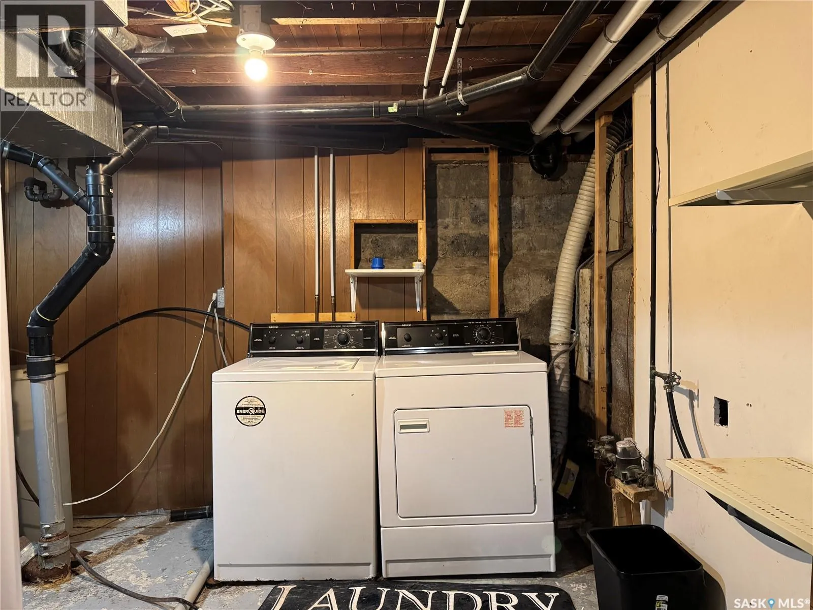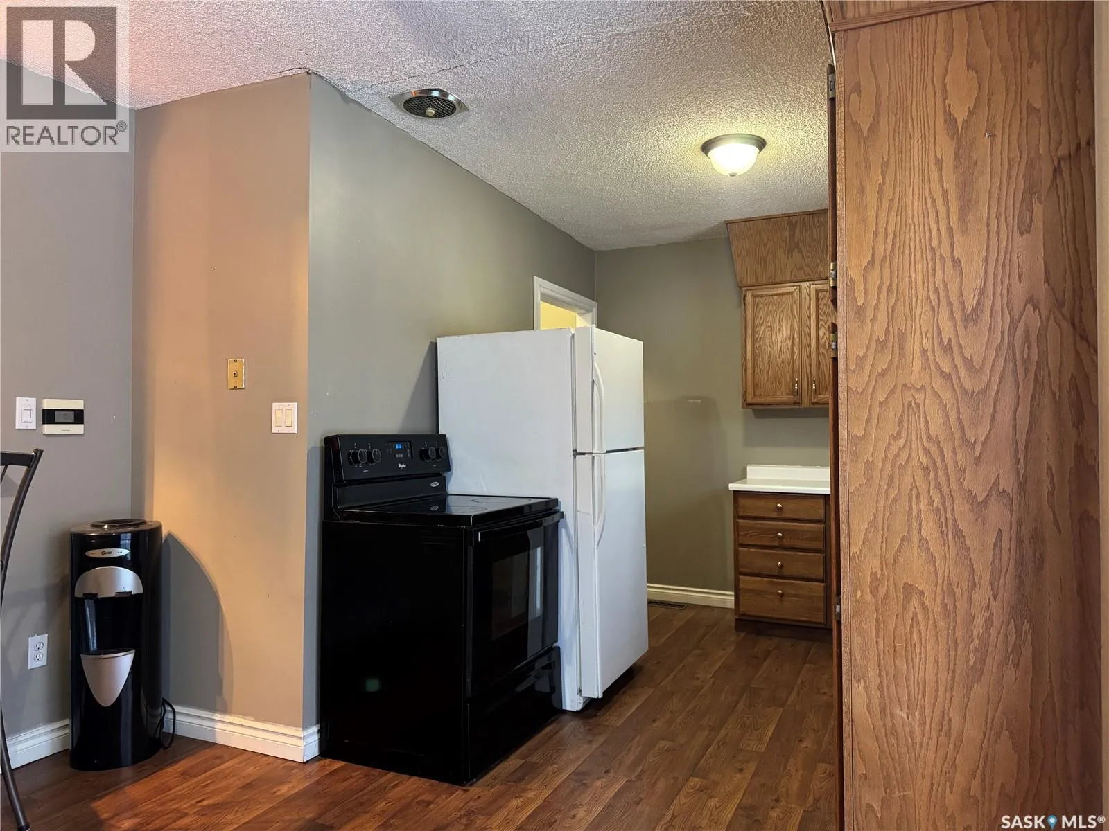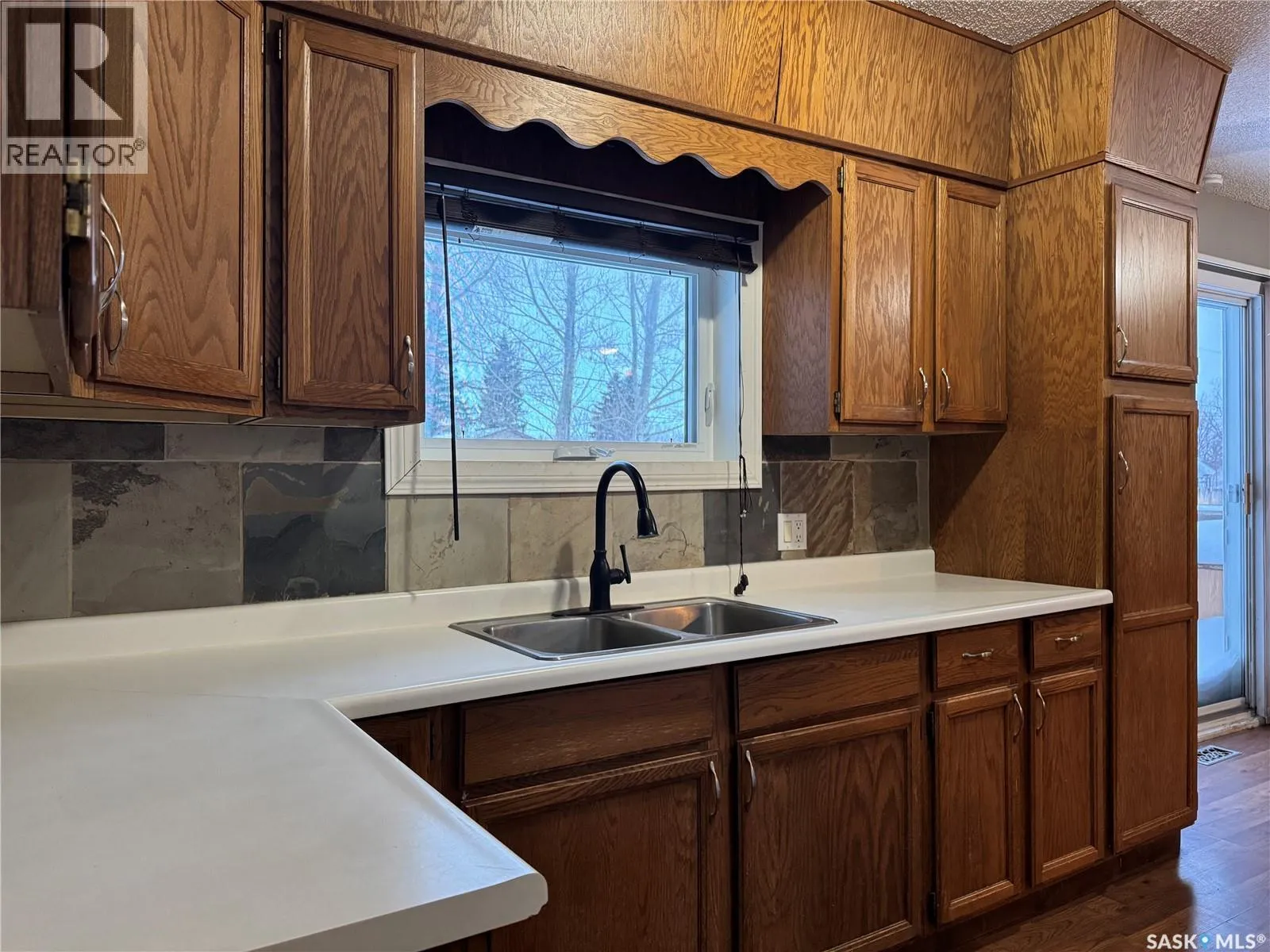 Welcome to this 1-bedroom, 1-bathroom home located in Wynyard on a 75 Ã 120 ft lot. The main floor offers a functional layout with one bedroom, a full bathroom, and an open-concept kitchen, dining, and living room. The dining area provides direct access to a large back deck, adding convenience for everyday use. The basement features a finished living room that offers flexible use, including the potential for a second bedroom. A spacious utility/storage room provides additional room for belongings and mechanical systems. Outside, the property includes a fully fenced yard, fire pit area, mature trees, and a single detached garage, offering privacy, outdoor enjoyment, and convenient parking. (id:27476)