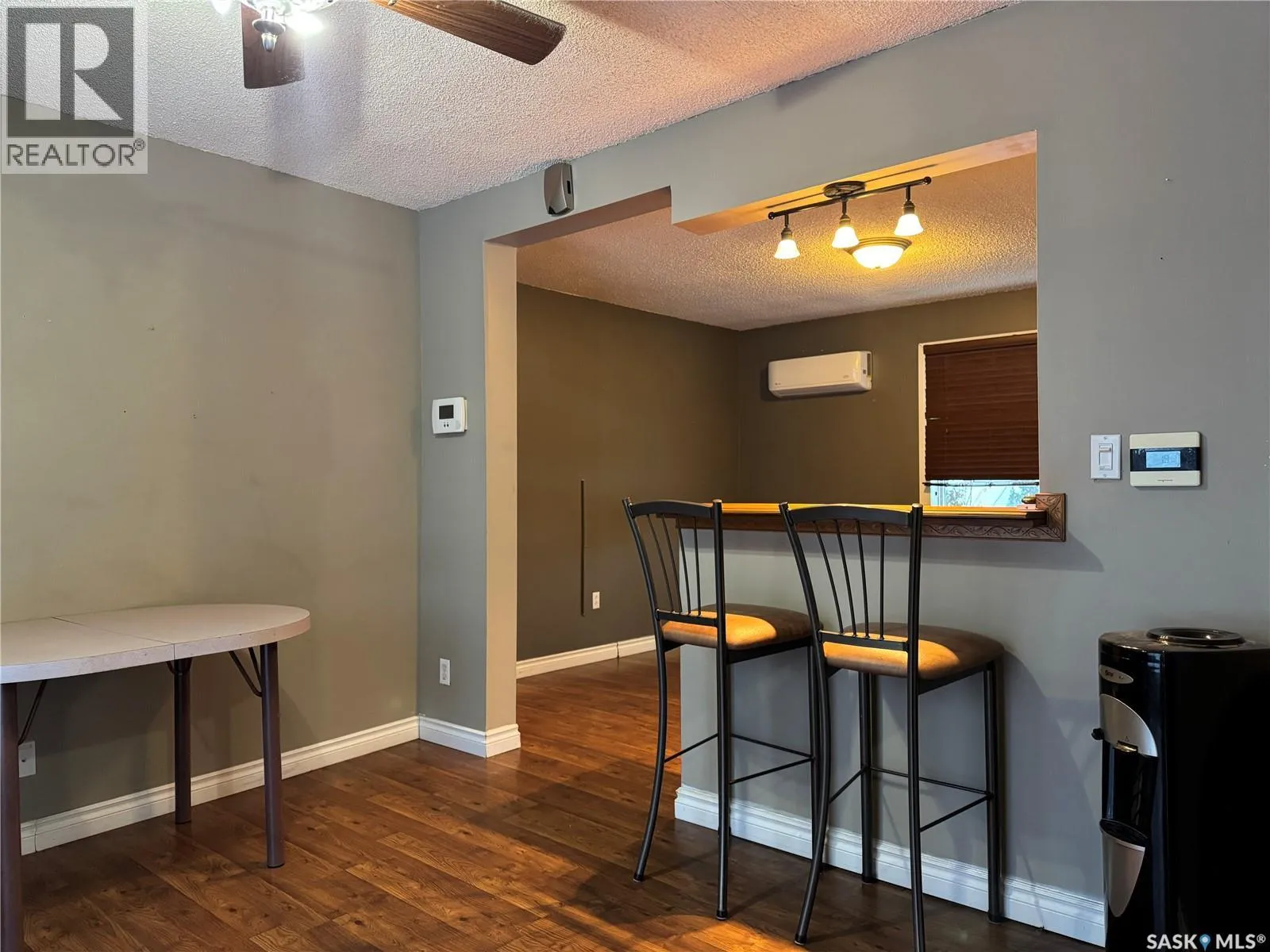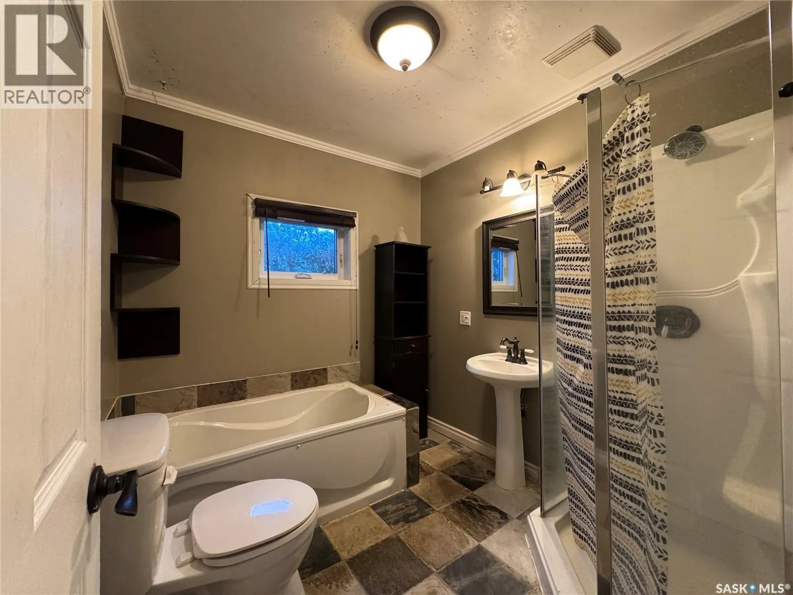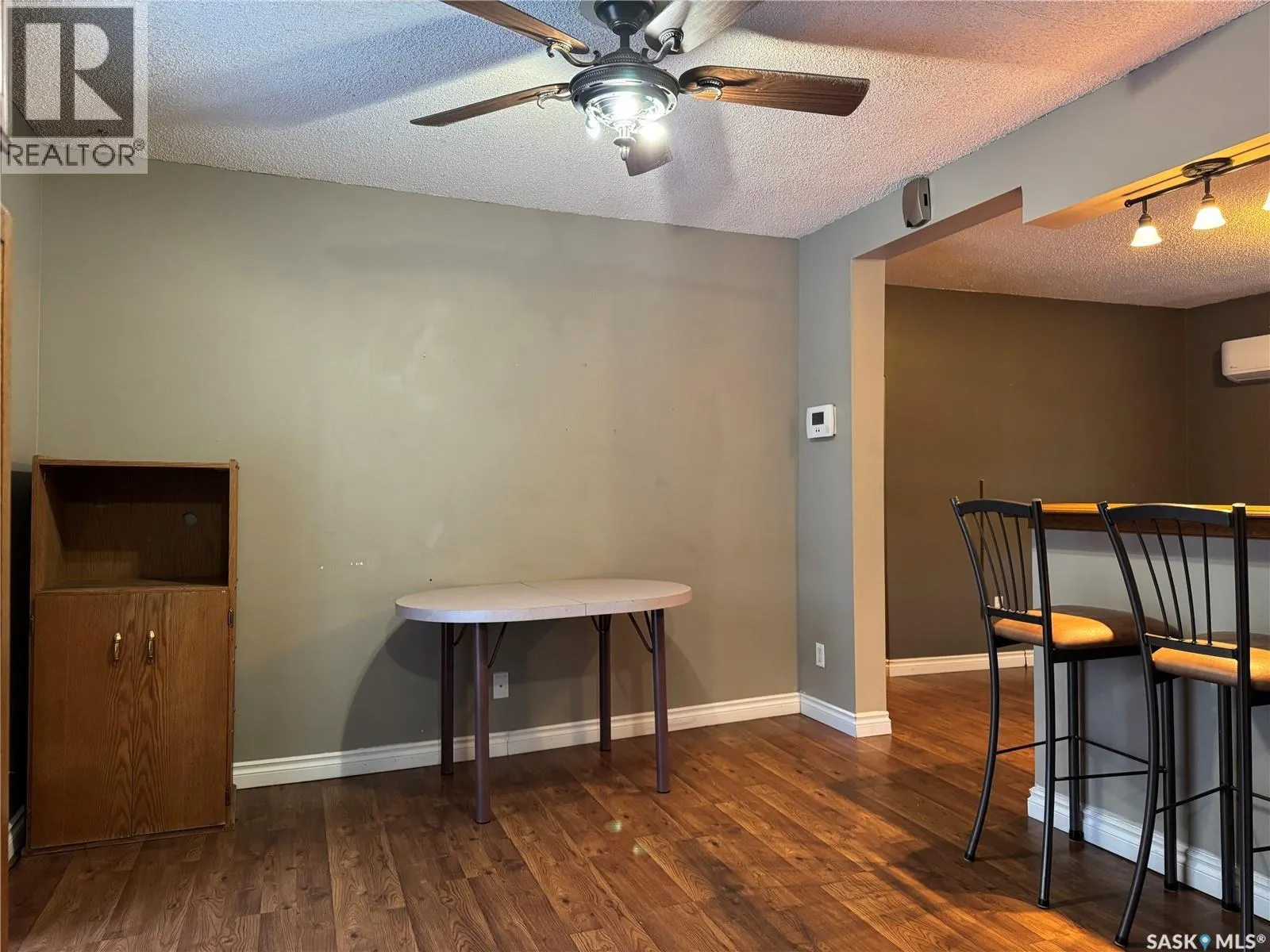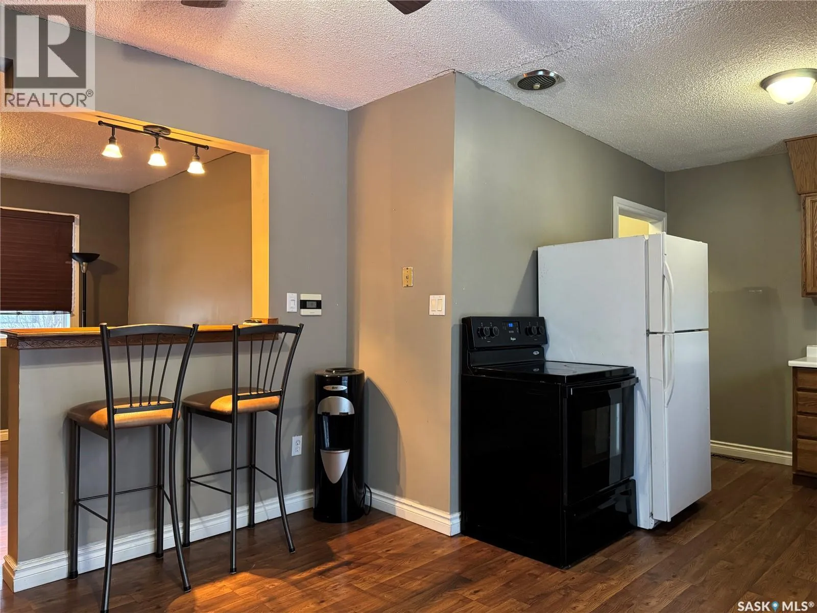 Welcome to this 1-bedroom, 1-bathroom home located in Wynyard on a 75 Ã 120 ft lot. The main floor offers a functional layout with one bedroom, a full bathroom, and an open-concept kitchen, dining, and living room. The dining area provides direct access to a large back deck, adding convenience for everyday use. The basement features a finished living room that offers flexible use, including the potential for a second bedroom. A spacious utility/storage room provides additional room for belongings and mechanical systems. Outside, the property includes a fully fenced yard, fire pit area, mature trees, and a single detached garage, offering privacy, outdoor enjoyment, and convenient parking. (id:27476)