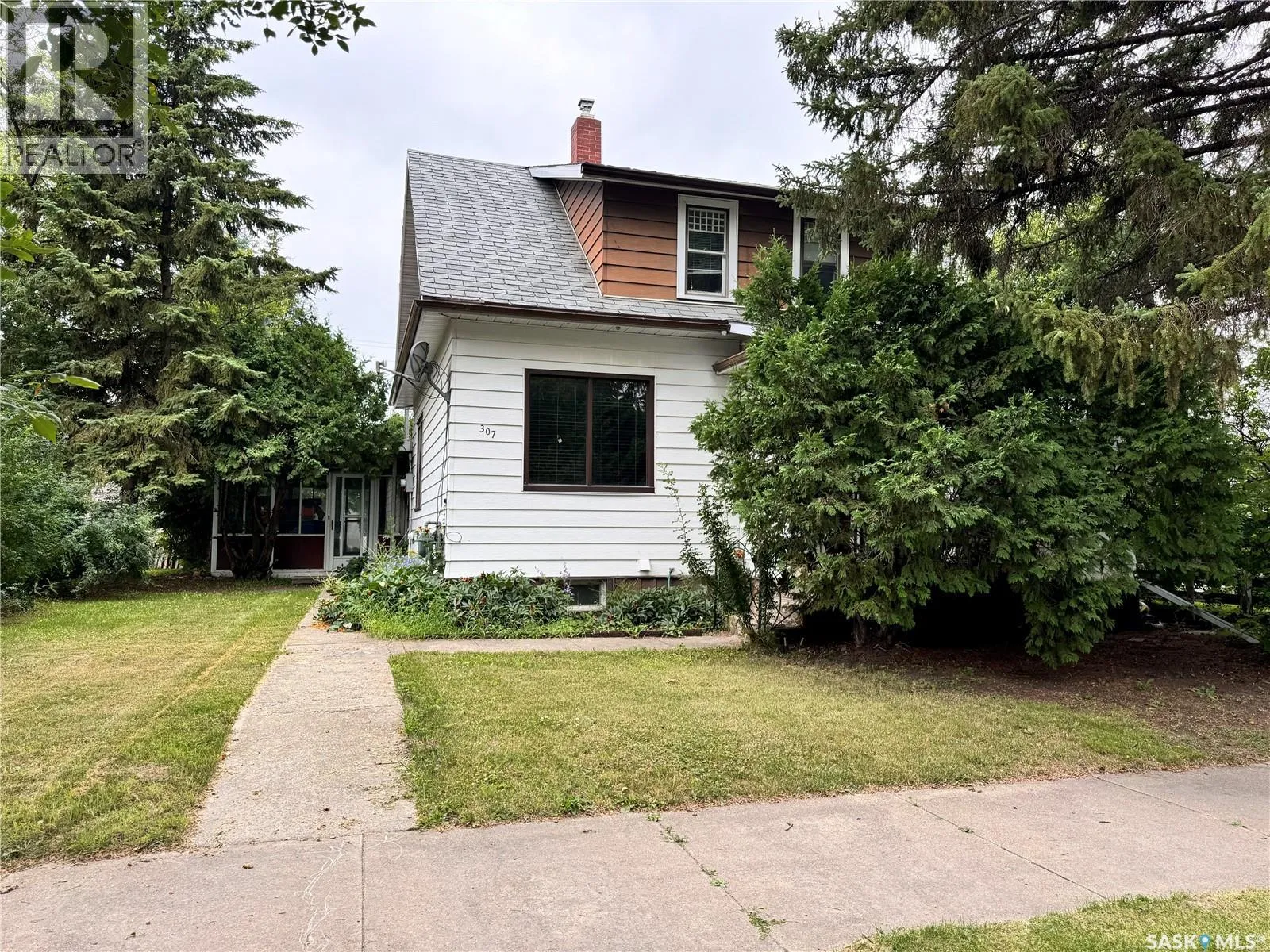 Welcome to this charming 1 1/2 story home, ideally situated on a quiet street with plenty of mature trees providing a picturesque setting. This home features four bedrooms and two bathrooms, offering ample space for a growing family or those who love to entertain guests. The main floor has an office space, mud room, nice sized kitchen and living space with one bedroom and laundry. Upstairs you will find 3 bedrooms. The attached single car garage provides convenience and additional storage space, perfect for keeping your vehicle safe from the elements and storing seasonal items. One of the highlights of this property is the enclosed porch area, which serves as a versatile space that can be used for storage, a workshop, or even converted into a cozy sunroom. The backyard is spacious and private, ideal for gardening, outdoor activities, or simply enjoying the tranquility of the surroundings. This home is located in a family-friendly neighborhood, a block away from local amenities, parks, and schools, making it an excellent choice for those seeking a peaceful yet convenient lifestyle. With a little TLC, this property has the potential to become your dream home. Don't miss out on this fantastic opportunity to own a piece of charm and character. Schedule a viewing today and imagine the possibilities! (id:27476)