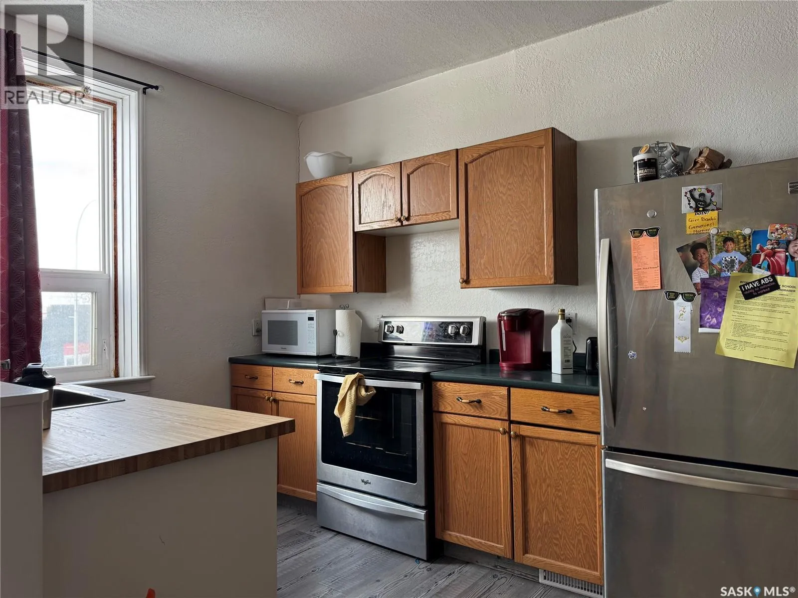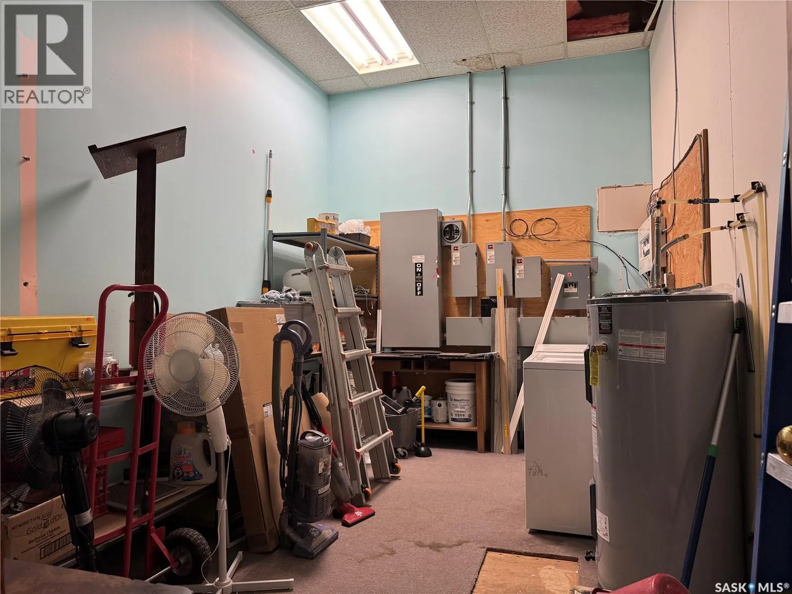 Excellent investment opportunity in the heart of Wynyard, SK! This well-located mixed-use commercial building offers strong income potential with seven business spaces on the main floor, including several long-term tenants providing stable revenue. The main level also features two public washrooms and a large utility room complete with washer and dryer. Upstairs, youâll find two residential rental units, including a spacious 2-bedroom, 2-bathroom suite and a 1-bedroom, 1-bathroom suite, adding additional income streams. With convenient street parking and a central location close to amenities, this property presents a fantastic opportunity for investors looking to expand their portfolio with a diversified commercial and residential asset in the Quill Plains region. (id:27476)