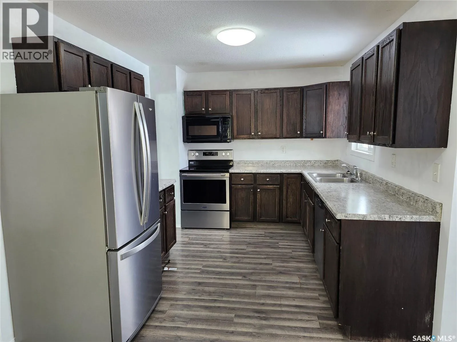 Welcome to small-town living in the peaceful community of Yarbo! This charming two-level split home offers space, functionality, and a great opportunity to make it your own. Built in 1963 with a well-planned addition completed in 2000, this 3-bedroom, 2-bathroom home blends original character with added living space. The home features durable vinyl siding and an attached garage for everyday convenience and protection from the Saskatchewan seasons. Inside, the entire home has been freshly painted in primer white, creating a clean canvas for the new owner to easily apply their preferred colors and finishes. Recent updates include improvements to both bathrooms, (new toilet, new taps) and new kitchen taps, helping modernize key areas of the home. The furnace has also been recently inspected for added peace of mind. Step outside to enjoy the large, fully fenced backyardâperfect for families, pets, or gardening. The yard features plum and cherry trees, red and golden raspberries, and a haskap berry bush that add beauty and the bonus of fresh fruit during the growing season. Whether you're a first-time buyer, or searching for a quiet community lifestyle, this property offers excellent potential and value. Donât miss your chance to make this solid home your own in the welcoming community of Yarbo! (id:27476)
