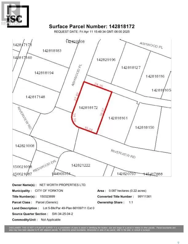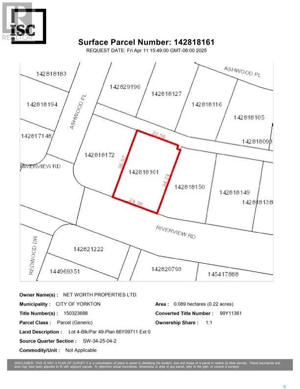 Large corner lot. (Multi Family) 19,166 sq. ft. Rental Housing Incentive Program, the City is offering up to 5 years, 100% tax abatement to construct rental units. While there will be direct servicing costs for any development on the site, the City will waive off-site Development Levies. The property is zoned R-3 Medium Density Residential and would allow for an eight-plex either as an apartment, rowhouse or townhouse, pending design. Max height 16.8 meters or 4 storeys, Setbacks, Rowhouse/townhouse: Front 6.0m, Side 1.8m, Rear 6m. Apartment: Front 7.5m, Side 1.8m, Rear 7.5m, Parking 1 per 1 bedroom unit, 1.25 per 2 bedroom unit, 1.5 per 3 bedroom, plus 0.2 per unit for guest parking, asphalt/concrete hard surfacing required, Storm Water Management Plan required, on-site storage of 1:25 year event for 15 minutes, maximum release rate of 1:5 year event, Utility Connections There are existing water and sewer connections to Riverview Rd, but they have reached end of life and we would require new connections. Landscaping as per Section 6.0 of the zoning bylaw Possible encroachment on east side Recommend a survey to confirm property line location (id:27476)