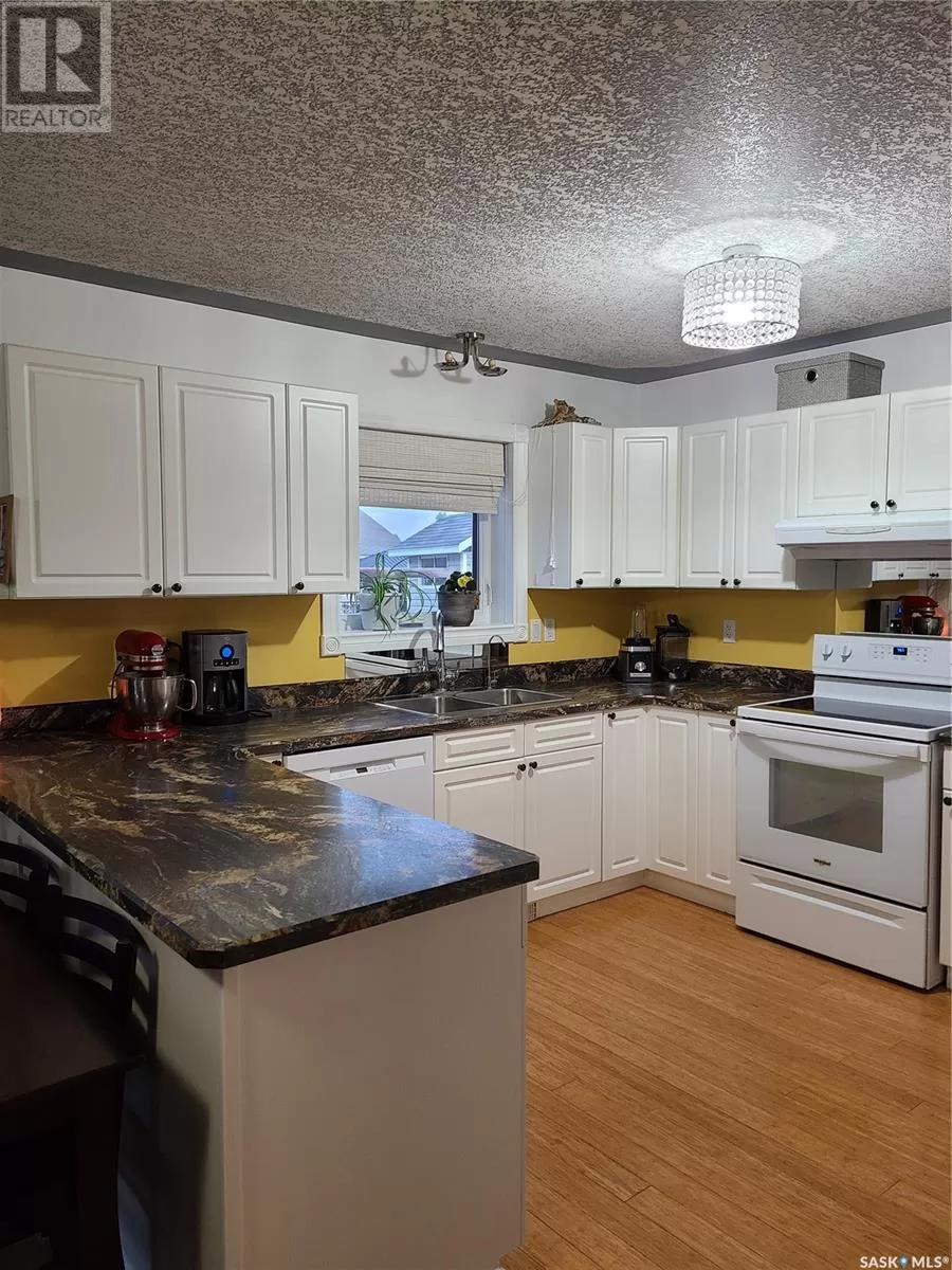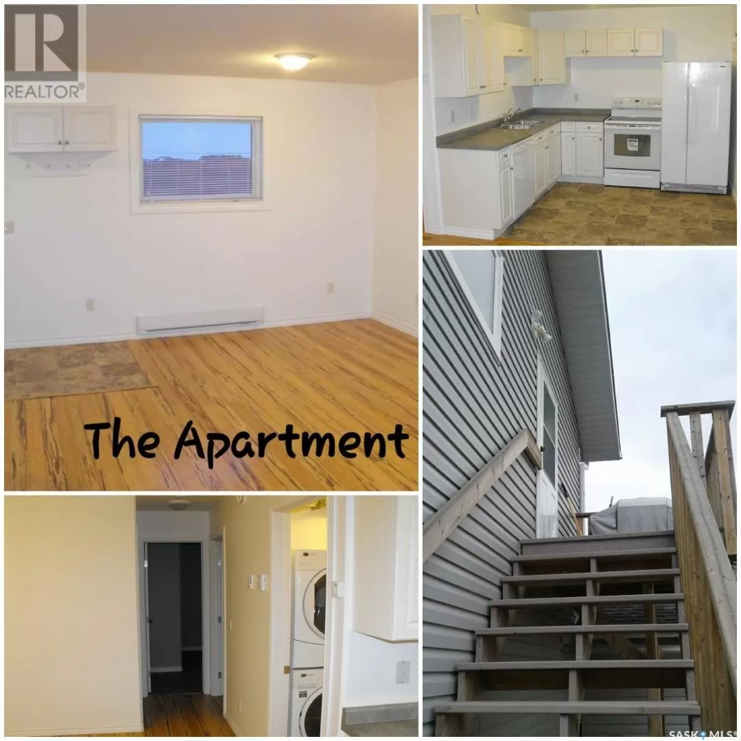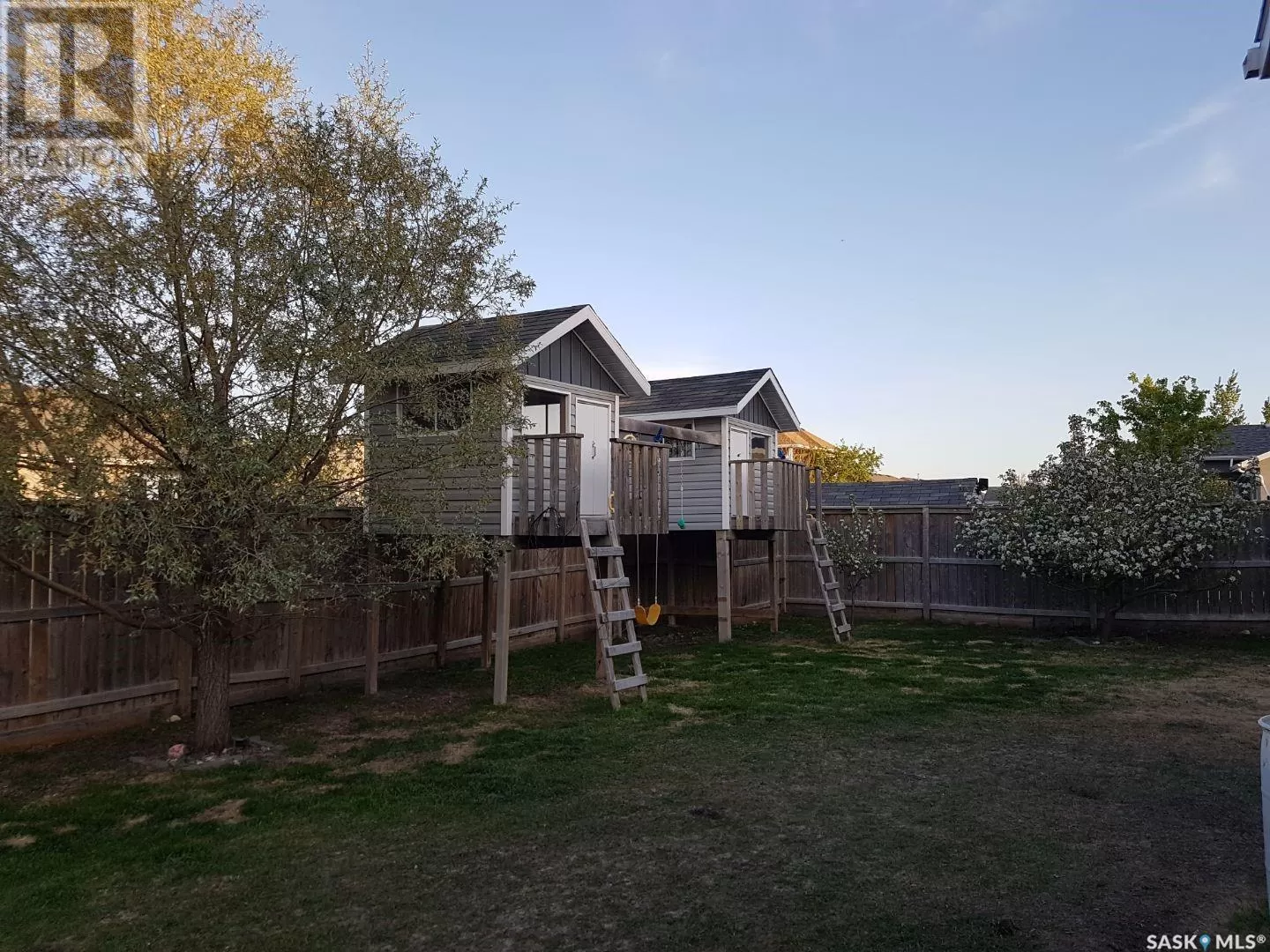 You will find this one of a kind income earning home in Yorkton's newest neighbourhood ..RIVERSIDE MEADOWS!! The main residence has over 2,600 sq. ft. of living space that will suit a growing family. The main floor has open kitchen/dining/living space with garden doors to the fenced back yard. The master bedroom with en-suite, 2 more bedrooms,4 piece bathroom and mud/laundry room complete the main floor. The basement has large windows and consists of another 2 spacious bedrooms, large rec room, exercise room, 3 storage spaces and 5 piece bathroom. The oversized attached garage is heated with access to the front and back yard. The backyard has a large east facing covered deck to get the morning sun and afternoon shade, garden space, 2 playhouses, large shed and many trees including three apple. The separate apartment/living space above the garage is completely separated from the house with private rear entrance. It has 2 bedrooms, 1 bathroom with tub, utility room and large living/dining/kitchen space. THE BONUS! The apartment earns $1250 per month to help pay down your mortgage faster! Tenant pays their own power(electric heat). There are 2 sets of appliances included. Move in to this one of a kind home and be able to pay half your mortgage without lifting a finger! (id:27476)