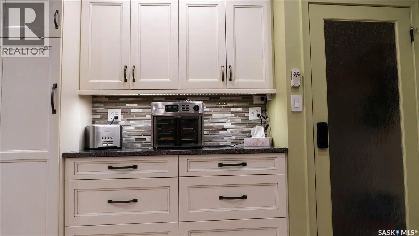 Find your oasis here! Let's begin! Indoor pool! The large property offers one of the most mature, beautiful and private backyards the city of Yorkton has to offer. Embrace the peace and beauty of nature with one step out of the back covered deck. Not to be outdone, the front yard curb appeal is just as impressive and stunning. Walking inside the front foyer, you are greeted with an open concept of modern design with over 2500 sq ft of living space. The kitchen offers a walk-in pantry, beautiful white cabinets, stainless steel appliances, an eat-up bar, and an abundance of counter space. Just off the kitchen is a large dining room and living room. The master bedroom offers a spa environment with its large bathroom en suite with heated floors, soaking tub, walk-in shower, and 2 dressing rooms. A garden door in the master bedroom will take you out to the indoor pool area. One more bedroom and a 4-piece bathroom are located on the main floor. The indoor pool is located in the large 26 by 20 rec room/pool room. Currently, the pool is covered by a removable floor. One can choose to use the pool or cover and use it as a large rec room. The pool area has a wood-burning fireplace and a heated floor bathroom. The covered and private deck is just off the pool room. The basement offers a separate entry rental suite with a bedroom, kitchen, 3-piece bathroom, utility area, and storage. A second bedroom could be developed in the basement. To complete this one-of-a-kind property, there is a 14 by 38 heated, attached garage with direct entry to the house. Here is your opportunity to own a one-of-a-kind property in the city of Yorkton! (id:27476)