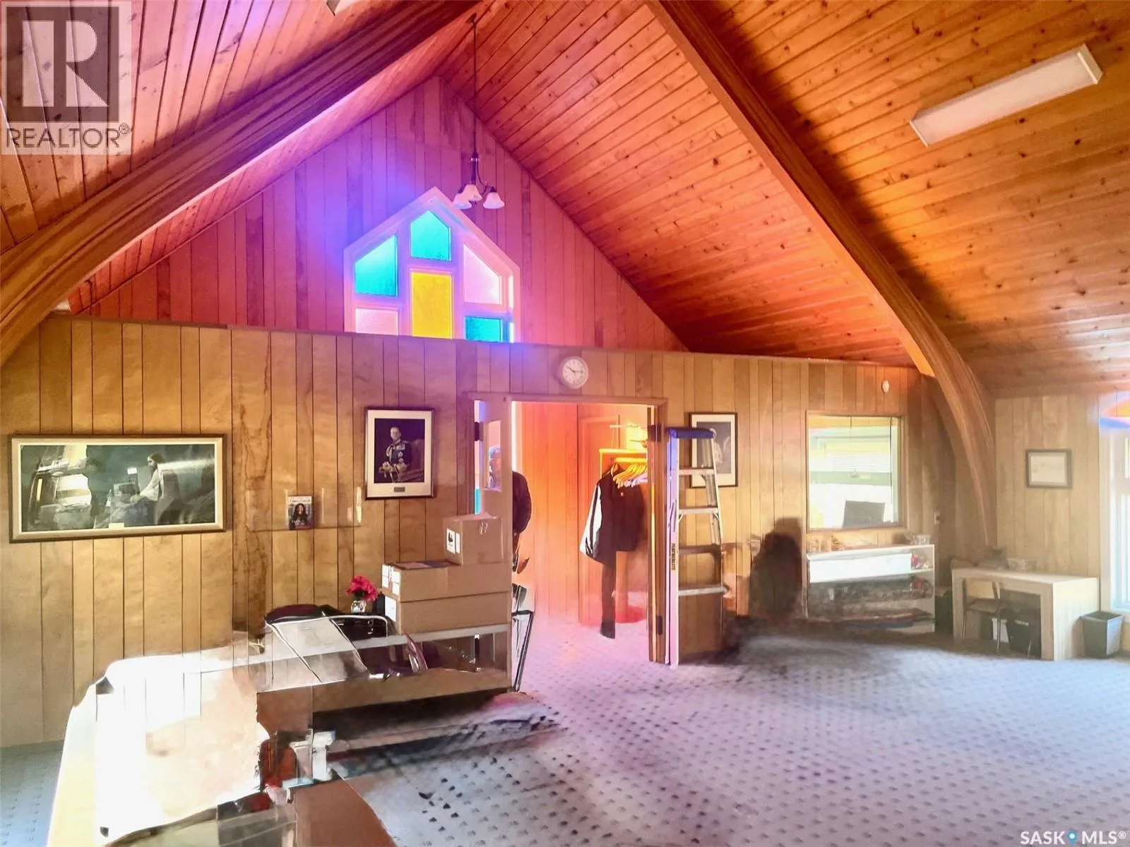 147 Booth Street Yorkton SK S3N 0J7 Welcome to this well-maintained church located in the charming neighborhood of Booth Street in Yorkton, SK. Built in 1966, this beautiful property blends classic architectural design with an abundance of natural light, creating an inviting atmosphere perfect for worship, community events, or gatherings. The main level features high vaulted ceilings and large windows that fill the space with warmth and light, offering a serene setting for services or group activities. The lower level provides a spacious open area ideal for meetings or community functions, along with a functional kitchen equipped with an oven, sink, cabinets, and ample counter space. A convenient serving window enhances the flow for catered events or group meals. This versatile and well-cared-for property presents an excellent opportunity for a congregation, community organization, or potential redevelopment. Call today to book your private viewing! (id:27476)