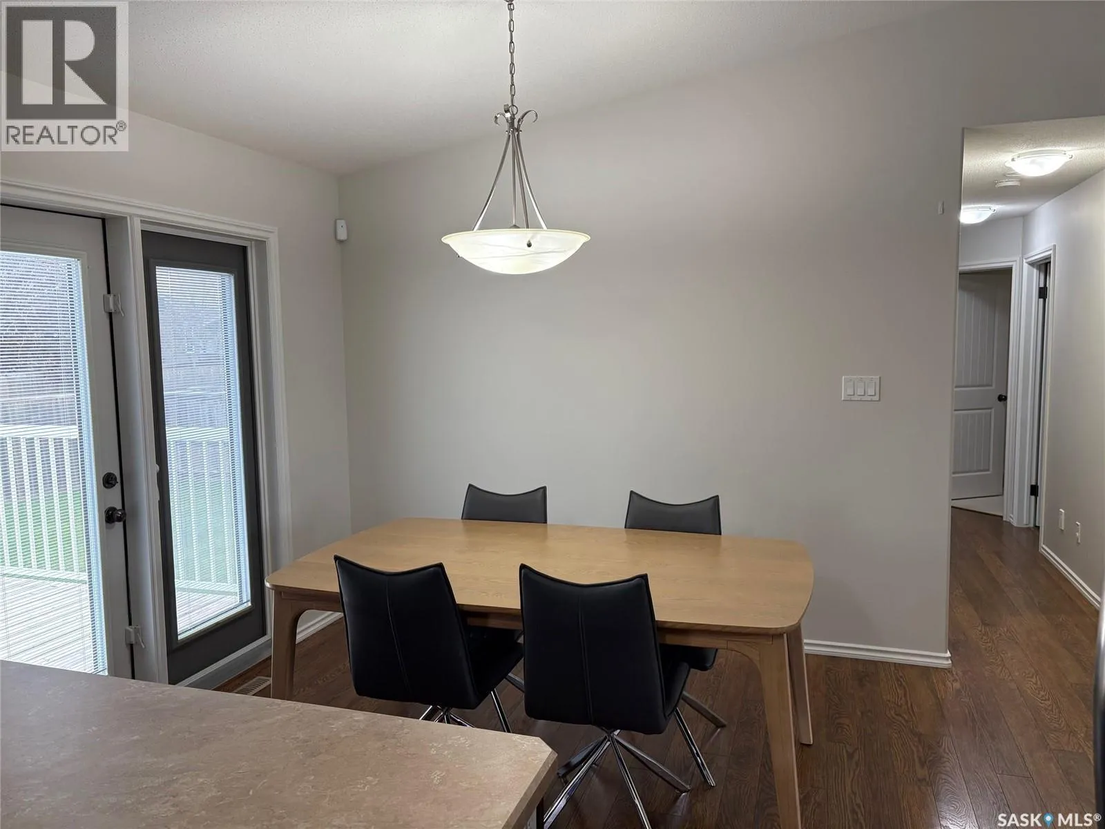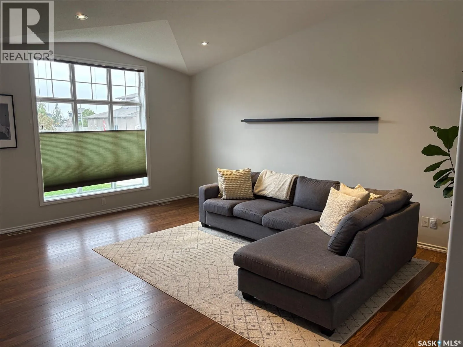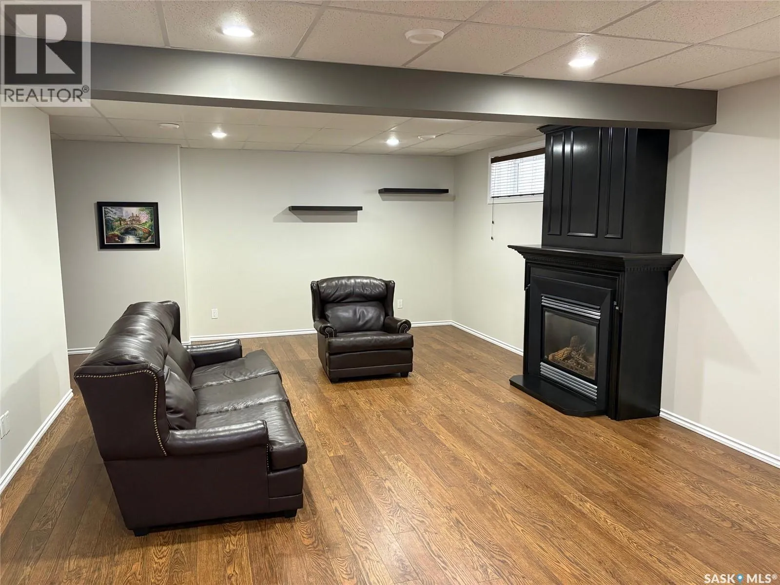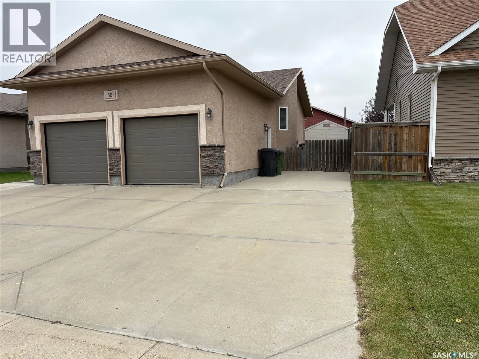 Donât Miss This Stunning Custom Bungalow in Yorktonâs Sought-After Riverside Grove Subdivision! This beautifully maintained 5-bedroom, 3-bathroom home offers 1,338 sq. ft. of bright, open-concept living space designed for comfort, style, and functionality. Step into a dream kitchen featuring espresso-stained maple cabinets, a convenient corner pantry, tile backsplash, and included appliances â ideal for everyday living or entertaining guests. The adjacent dining area opens through garden doors to a west-facing deck, perfect for enjoying sunsets and backyard gatherings. You'll love the thoughtful details throughout: modern light fixtures, rich flooring, and tasteful paint choices that make this home feel like new. The primary bedroom boasts a spacious walk-in closet and a private 3-piece ensuite for your comfort. The fully finished lower level offers even more space with a large family room complete with a cozy gas fireplace, a wet bar, and a designated games area. Youâll also find two large bedrooms, a full bathroom, a den/office space, and ample storage. The utility room is neatly tucked away for convenience. Outside, enjoy the mature, landscaped yard from your large deck with aluminum railings, or take advantage of the oversized driveway and double attached garage. Additional features include central air, central vac, and a fantastic location near parks, walking trails, and all local amenities. This is the perfect move-in-ready home for a growing family in one of Yorktonâs most desirable neighborhoods. As per the Sellerâs direction, all offers will be presented on 10/21/2025 5:00PM. (id:27476)