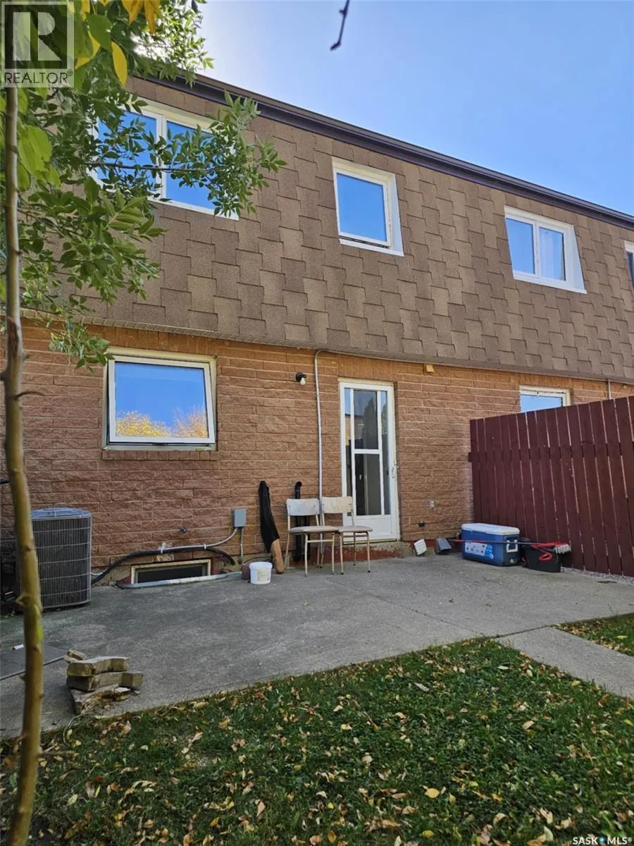 End Unit on Corner of Manitoba Avenue and King Street E Fairview Village Condominium. This lovely end unit offers the kitchen and living area plus a 2-piece bathroom on the main level. Upstairs you will find 3 good sized bedrooms and a 4-piece bathroom. A finished basement provides 3 rooms to accommodate your needs, a laundry area and a utility area. Out your back door the fenced yard provides a patio, lawn area, and a storage shed with the yard backing onto a green space. This unit is part of a well run condo association with reasonable monthly condo fees to cover building and exterior property maintenance. The unit has one exclusive parking stall plus guest parking in the lot. (id:27476)