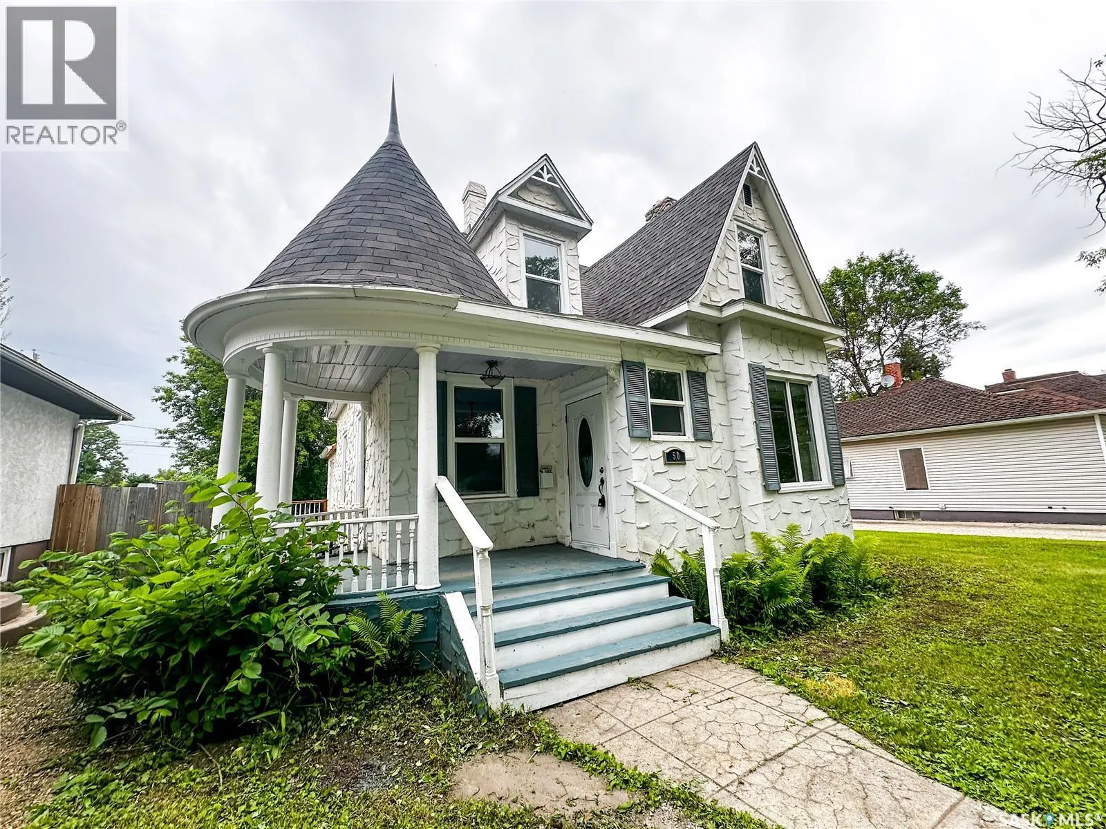 Experience old and new style charm in this beautiful one of a kind custom Victorian style home that has been extensively renovated from the basement up while preserving as much of the original craftmanship! This 3 bedroom, 1 bathroom home is situated on just over 2 lots and has a large front & backyard with a back lane. When you drive up, you will notice the unique features right away such as a turret style roof above the charming covered porch. New shingles complete the whole roof which is a fantastic design. Stroll to the North of the property and be prepared to be amazed at the original cobblestone chimney. Near the back you will find a great mudroom entrance with a small deck for easy access. Back around the front, step onto the covered porch, just imagine sitting out on the deck and enjoying a coffee! Entering the front, you will notice instantly the original inside wooden door with the old style keyhole. One inside, the foyer opens up to a large dining room with the kitchen just beyond. You will notice NEW windows, NEW vinyl flooring, a refreshed kitchen, complete with a portable island ,an updated bathroom while keeping the charm of of the wallcovering which is also amazing. The 4pce bathroom has new outlets to add a stackable washer & dryer as well. Just off the dining room you will find a large living room with original hardwood floors, original high style baseboards and crown molding. The focal point is the original fireplace along with an original built in window bench in front of the main new picture window. On the second floor you will climb the original staircase and find the primary bedroom along with two other bedrooms, a couple storage areas and NEW windows here as well. The basement is clean, dry and new concrete is evident to bring it back to life with a brand new natural gas hot water tank and an updated furnace as well. So much love and effort has gone into this beautiful home as the owner knew it was worth saving! Come take a tour! (id:27476)