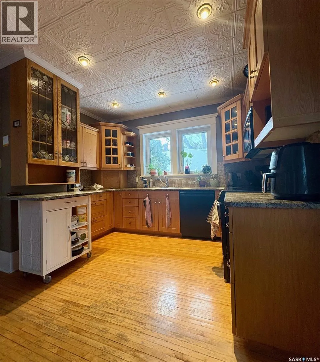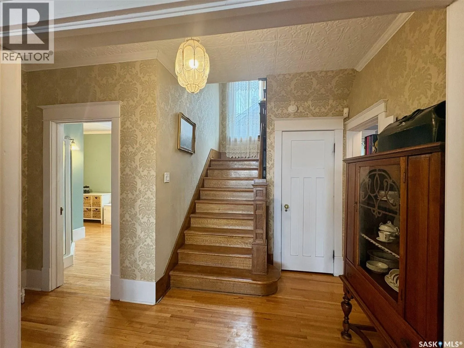 140 Third Ave North Yorkton SK One-of-a-Kind Character Home in Yorkton, Saskatchewan. Located on historic Third Avenue North, this stunning character home is overflowing with curb appeal and timeless charm. The home showcases beautiful original details throughout, including leaded glass windows, hardwood flooring, original trim, vintage doors. These classic features are thoughtfully blended with modern upgrades to kitchen & bathrooms. Set on a large newly fenced lot, the property offers both privacy and space. The welcoming entrance features a natural gas fireplace & leaded windows with natural light. A spacious, separate living room connects to dining room through elegant French doors, creating a perfect space for entertaining. The updated kitchen complements the homeâs character while offering ample counter space, cabinetry, pantry, and direct access to back deck. Main floor washroom has been updated and includes a renovated laundry area. A solid oak staircase filled with natural light leads to the second level to an updated 4-piece bathroom, three large bedrooms, each featuring large windows for natural light and walk-in closets. Additional features include European chandeliers, exposed beamed ceilings, crystal door knobs and many unique architectural details that must be seen to be appreciated. Basement level offers even more possibilities. It has a newly updated interior entrance from the main level as well as separate private exterior entrance, making it ideal for extended family or potential revenue generation. Basement also includes a large family room with space for a kitchen/dining area, living room area, spacious bedroom, an updated 4-piece bathroom and utility/storage room. The oversized lot also boasts a heated and insulated double garage, a single detached garage, and a newly fenced back yard, providing great privacy with deck and fire pit to enjoy outdoors . Truly one-of-a-kind property blends historic charm with modern comfort and offers exceptional space both inside and out. (id:27476)