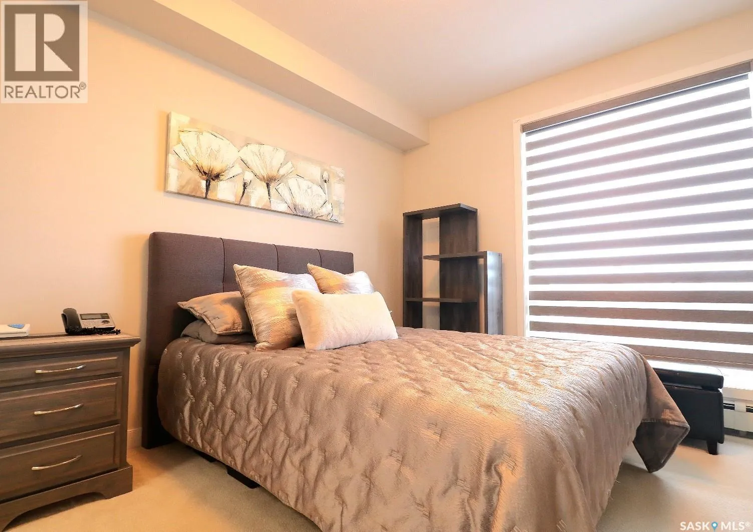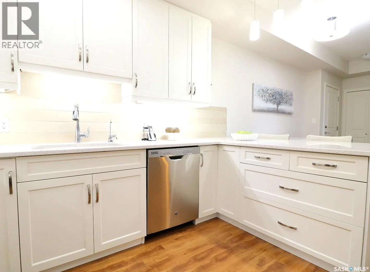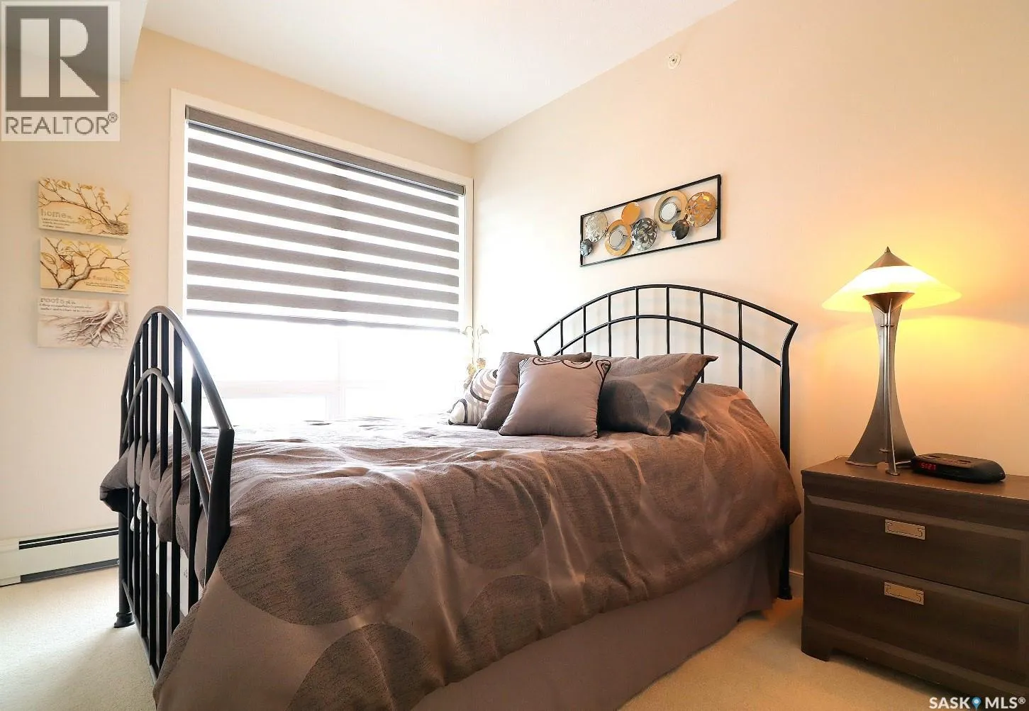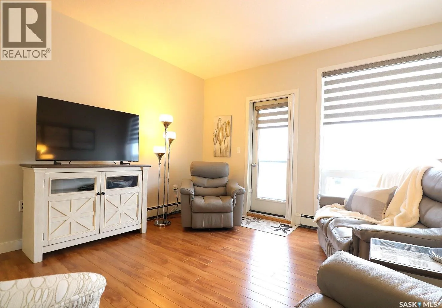 Welcome to refined, low-maintenance living in one of Yorktonâs most desirable and modern condominium developments. Built in 2015 and ideally located in the cityâs newest residential area, this beautifully maintained 987 sq. ft. residence offers 2 bedrooms and 2 full bathrooms, thoughtfully designed for both comfort and style. Inside, the home features an inviting open-concept layout enhanced by elegant white cabinetry, designer window treatments, and bright, contemporary finishes that create a space that feels both modern and timeless. The kitchen offers excellent functionality with a built-in dishwasher and generous workspace, making everyday living and entertaining effortless. Step outside and enjoy the convenience of a natural gas BBQ connection on the balcony, eliminating the need for propane tanks and making outdoor cooking simple and enjoyable. An additional stand-alone freezer provides extra storage flexibility, while the reverse osmosis (RO) water system adds another layer of comfort and quality to the home. Residents of this well-appointed building enjoy a range of desirable amenities, including an elevator, fitness area, and welcoming amenity roomâperfect for gatherings and social events. The building is also wheelchair accessible, offering ease and accessibility for all lifestyles. One of the standout features is the underground-style parking (above ground but fully enclosed), providing a protected space for your vehicleâa welcome luxury during Yorktonâs long, cold winters. Condo fees offer exceptional value and peace of mind, covering common area maintenance, exterior building upkeep, garbage service, heat, common insurance, lawn care, reserve fund contributions, sewer, snow removal, and water. Whether you are looking to downsize in style, simplify your lifestyle, or invest in a quality property, this elegant condominium offers comfort, convenience, and modern living in an exceptional location! (id:27476)