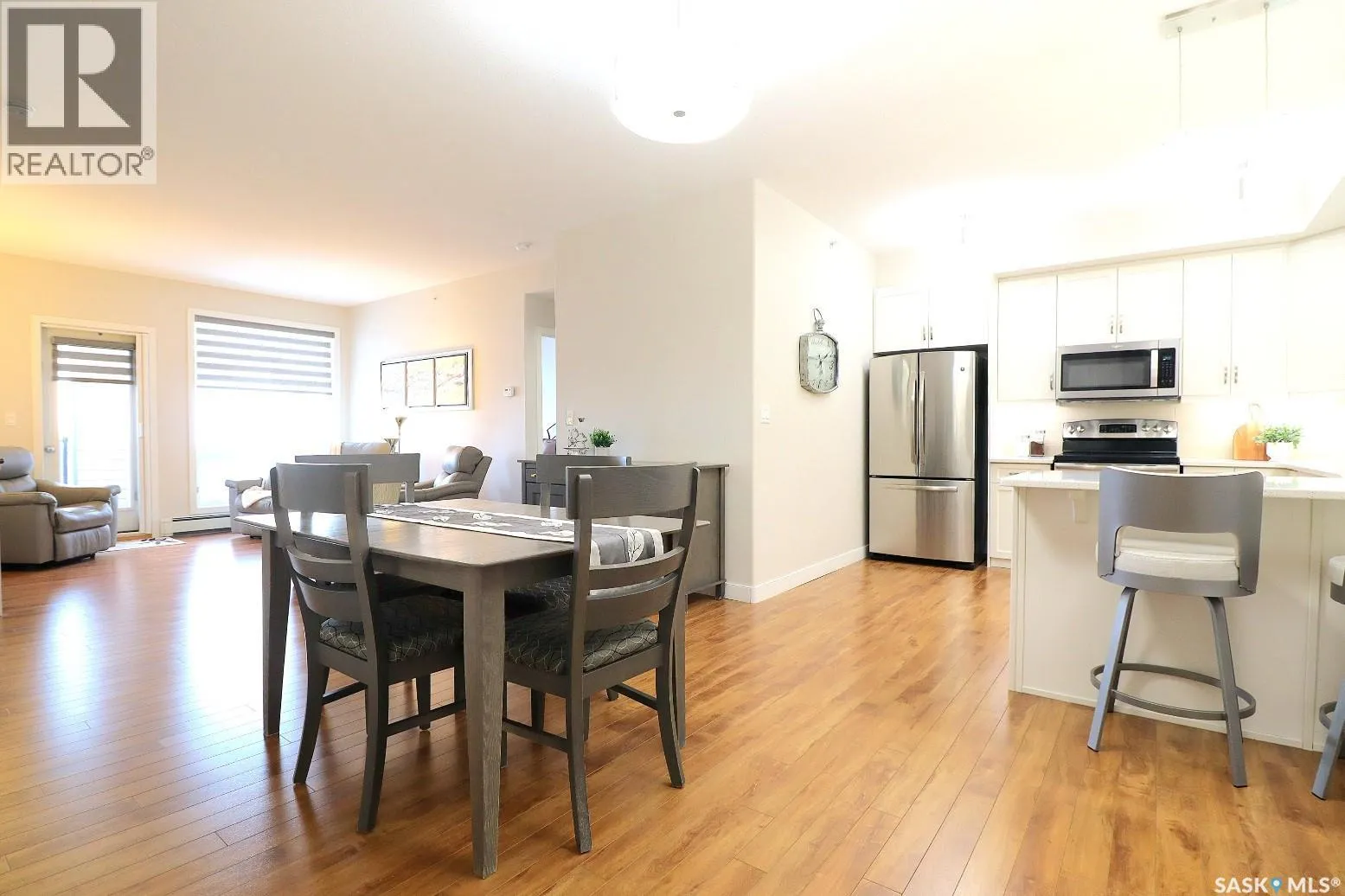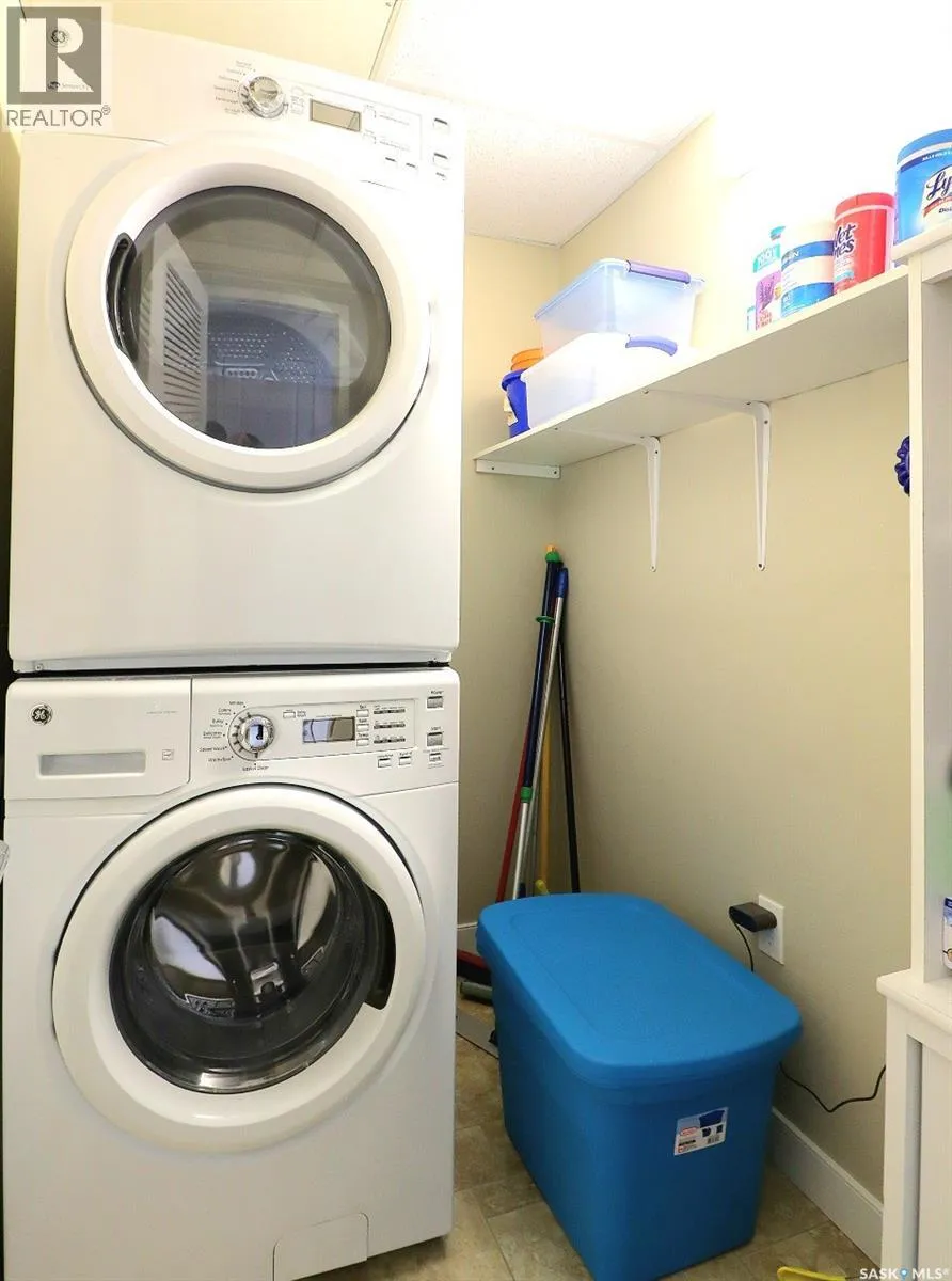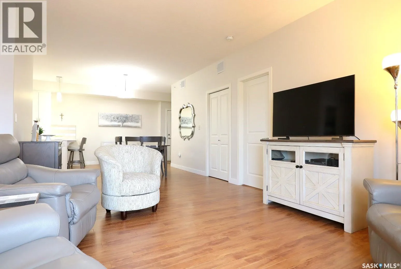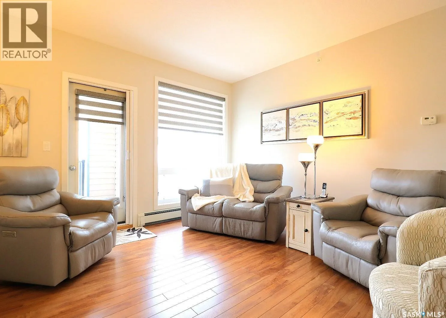 Welcome to refined, low-maintenance living in one of Yorktonâs most desirable and modern condominium developments. Built in 2015 and ideally located in the cityâs newest residential area, this beautifully maintained 987 sq. ft. residence offers 2 bedrooms and 2 full bathrooms, thoughtfully designed for both comfort and style. Inside, the home features an inviting open-concept layout enhanced by elegant white cabinetry, designer window treatments, and bright, contemporary finishes that create a space that feels both modern and timeless. The kitchen offers excellent functionality with a built-in dishwasher and generous workspace, making everyday living and entertaining effortless. Step outside and enjoy the convenience of a natural gas BBQ connection on the balcony, eliminating the need for propane tanks and making outdoor cooking simple and enjoyable. An additional stand-alone freezer provides extra storage flexibility, while the reverse osmosis (RO) water system adds another layer of comfort and quality to the home. Residents of this well-appointed building enjoy a range of desirable amenities, including an elevator, fitness area, and welcoming amenity roomâperfect for gatherings and social events. The building is also wheelchair accessible, offering ease and accessibility for all lifestyles. One of the standout features is the underground-style parking (above ground but fully enclosed), providing a protected space for your vehicleâa welcome luxury during Yorktonâs long, cold winters. Condo fees offer exceptional value and peace of mind, covering common area maintenance, exterior building upkeep, garbage service, heat, common insurance, lawn care, reserve fund contributions, sewer, snow removal, and water. Whether you are looking to downsize in style, simplify your lifestyle, or invest in a quality property, this elegant condominium offers comfort, convenience, and modern living in an exceptional location! (id:27476)