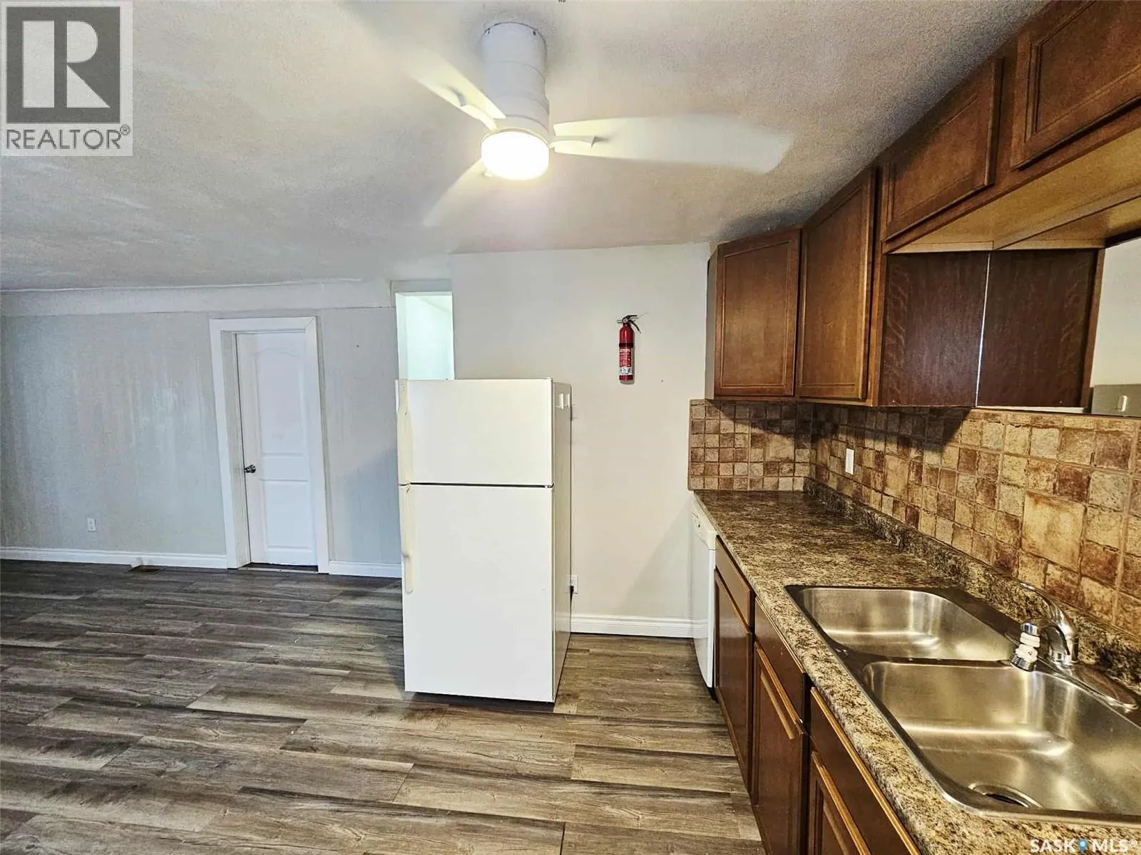 1 block from Yorkton Regional High School, Suncrest College and 2 blocks from Sacred Heart High School 154 Ontario Ave Cute, Compact and 1.5 blocks to Yorkton Regional High School, Suncrest College, 2 blocks to Sacred Heart High School. This accessible property has a ramp and fenced front deck, a fenced side yard deck directly off the primary bedroom and a fully fenced back yard with shed and back lane access. Open concept kitchen and living room, 2 bedrooms and a 4 piece bath. Fresh interior paint. The basement houses the laundry with update washer, furnace and updated water heater. (id:27476)