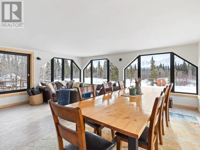 haines junction Discover the true rustic elegance of the Mount Logan EcoLodge, nestled among the world-renowned Kluane Mountain range. This exceptional property spans 4 generous acres of land, offering a rare gem for those in search of a business opportunity with a powerful reputation or a private multi-family retreat. With 4100 sqft of living space, the lodge features an open-concept design, a kitchen, dining area, living room, powder room, and a sunroom with stunning views of Mount Elias. Upstairs, a large suite with king bed, bunkbed, bath, sitting room and private deck offering Northern Lights viewing. Two additional rooms exude their own elegance and charm ensuring a cozy stay. The property also includes a yurt and a pod cabin for outdoor enthusiasts. Additional features include a creek running along the property, a sauna that seats 10 people, a green house, firepit area and more! (id:27476)