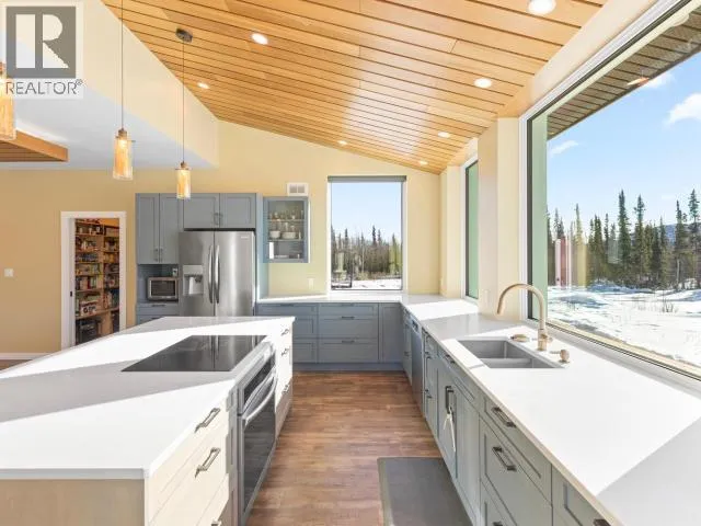 Whitehorse 2 houses on 12 acres just 20 minutes outside of city limits! Welcome to your luxurious property in the Grizzly Valley subdivision. The 5-bedroom main house boasts Italian heated tile and laminate flooring, custom shelving, open concept kitchen with pantry and quartz countertops, electric blinds and a deck off the kitchen. The primary bedroom offers a 5-pc bath, walk-in closet, and deck access. The main level also includes a living room with wood stove and laundry room with 4 ft crawl space. Upstairs there are 4 bedrooms and a large bathroom with linen closet. Scenic Mountain Views can be seen from almost every window. Both homes have separate septic fields, water holding tanks, and modern amenities. The main house has soundproofing and EV charging station readiness. The guest house offers 2 bedrooms, a merit kitchen, custom shelving, cedar beam lighting, wood stove and a beautiful bathroom with walk in tile shower. Contact your Realtor for a viewing!! (id:27476)