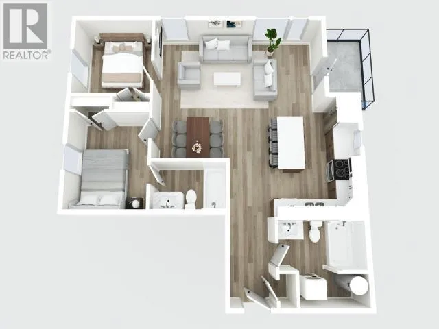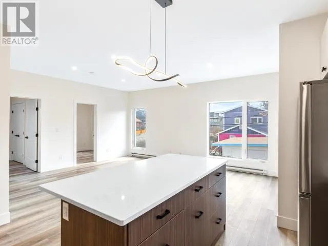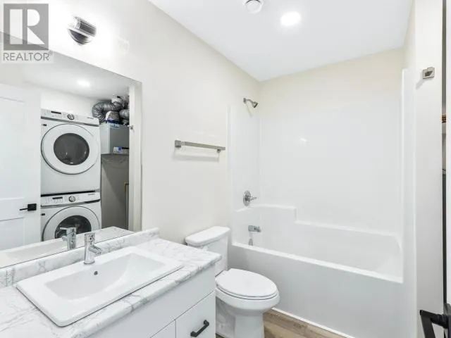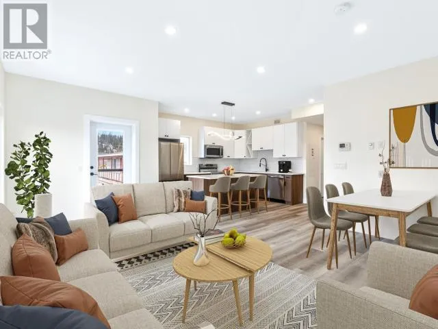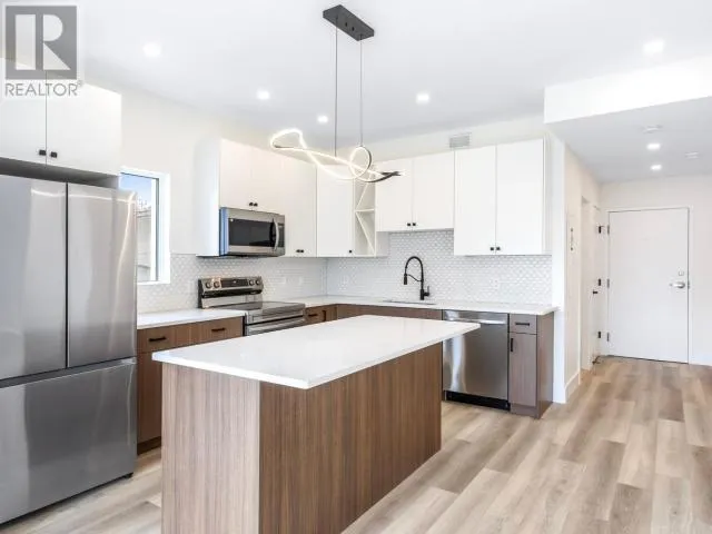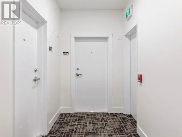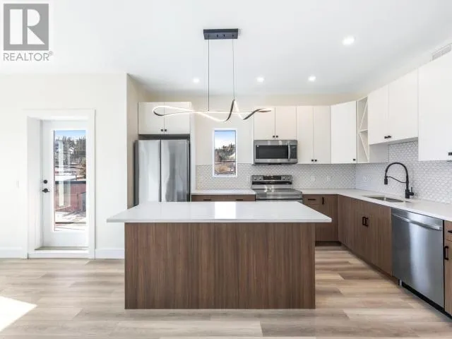 Vibrant, compact, and dialed into downtown--Suite 203 brings modern living into focus. This second-floor, 2-bedroom, 2-bathroom suite offers 752 sqft of smart design with southern exposure that fills the space with natural light. The open-concept main living area features 9' ceilings, vinyl plank flooring, and an upscale kitchen with quartz countertops, tiled backsplash, island with seating overhang, and stainless steel appliances. The primary bedroomincludes a private ensuite, while the cozy secondary bedroom is complemented by a separate full bathroom with integrated laundry. A south-facing balcony off the living room adds to the comfort, and a dedicated storage lockerkeeps things tidy. This suite is pet-friendly and rental-friendly with no limitations. Close to shops, restaurants, groceries, trails, and entertainment--it's everything you want, right where you want it. Available now/immediate possession. Condo fees:$301/month. (id:27476)