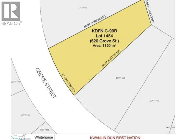 Fantastic building lot in Porter Creek! Located at 520 Grove Street, this 1,150 m² (0.28 acre) fully treed parcel offers excellent potential for single-family or multi-unit development. Backing onto a large green space, it provides direct access to walking trails, a playground off Pine Street, and a skating rink. Offered as a Kwanlin Dün First Nation residential leasehold with approximately 120 years remaining on a 125-year lease under the KDFN Final Agreement. Part of the KDFN C-99B Settlement Land Parcel, the property also has an extended building timeline through January 20, 2030. A rare opportunity to build your dream home or investment in one of Whitehorse's most sought-after neighbourhoods--perfect for families and outdoor enthusiasts. Deadline for offers January 29th 3pm. (id:27476)
