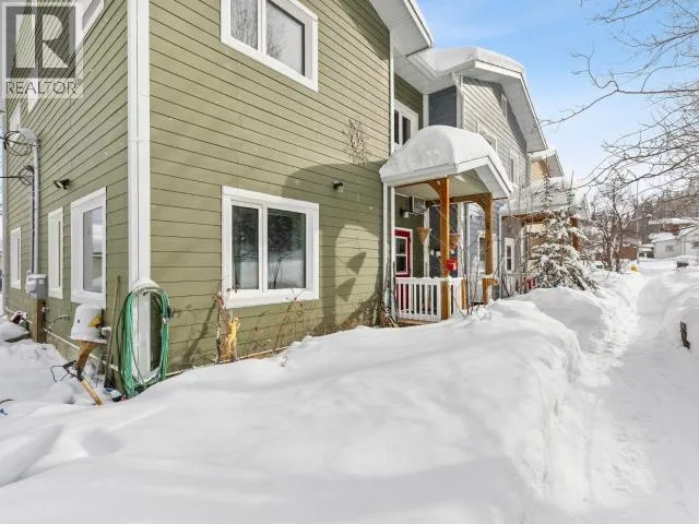 Discover this super-green downtown townhouse featuring three generously sized bedrooms and one and a half baths. The main floor is graced with nine-foot ceilings, natural light and views of Cook Street Park and the clay cliffs that comprise the front yard of this tucked away downtown haven. Upstairs comprises three generous, whimsical bedrooms and an attractive tiled bathroom. Washer, dryer and fridge are under two years old. This super solid build "for the North" has exceptional insulation--R56 in the walls and R80 in the ceiling plus quadruple-glazed, argon-filled, low-e windows for maximum energy efficiency. Electric heat and lighting costs average only $318 per month. Condo fees are just over $300, with $100 allocated to the reserve fund. Ideally located on a greenbelt with hiking and biking trails right outside your door, this home is within walking distance of schools and shopping, offering the very best of downtown living. Don't let this one get away. (id:27476)