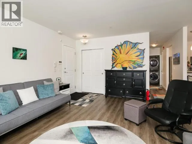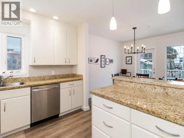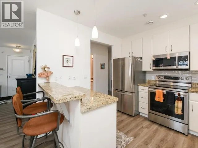 Welcome to 104-6100 6th Ave. Centrally located downtown condo offering 944 sq ft of bright and functional living space. This 2 bedroom, 1 bathroom, second floor unit is serviced by an elevator and features an open layout with newer flooring, paint, and appliances. The modernized kitchen includes granite countertops, a breakfast bar, tiled backsplash, S/S appliances, and plenty of cabinet space. The dining area opens to a private patio with morning sun and mountain views, while both bedrooms are generously sized and overlook nearby green space. Enjoy comfortable in-floor heating from a revamped electric boiler and the rare benefit of no shared walls, with only two units per floor. Additional highlights include one powered parking stall, a storage area on the main floor and convenient proximity to parks, trails, and Main Street amenities. Condo fees of $485 per month include insurance, water, sewer, garbage, snow removal, and maintenance. Call today and check out our YouTube video! (id:27476)