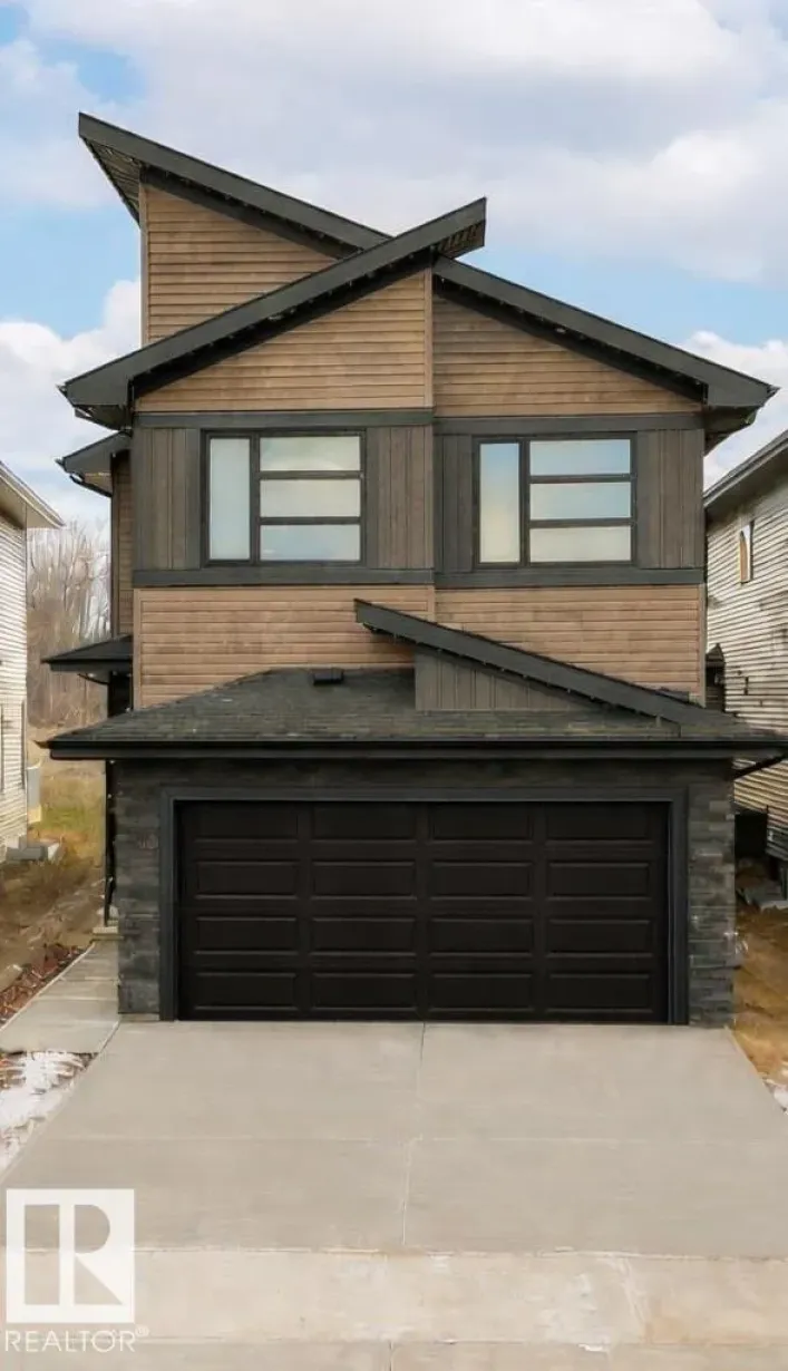 RARE FIND! Built by Sunnyview Homes this half duplex boasts over 2100sqft. OVERSIZED double attached garage with a HUGE 4 car driveway. Main floor den/bedroom with a 3-piece bathroom. The U-shaped kitchen features, upgraded ceiling height cabinets with quartz countertops. The open to below