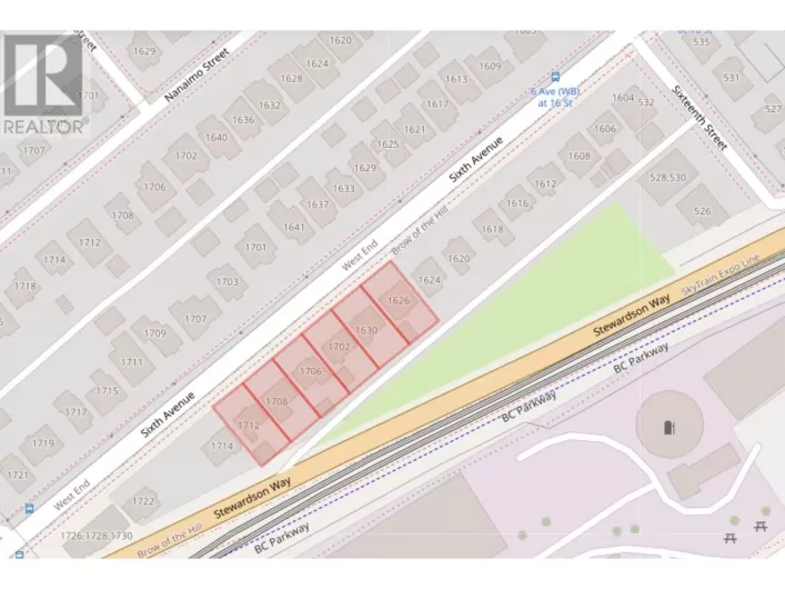 Developer Alert! Rare opportunity to acquire six side-by-side lots on Sixth Ave (1626, 1630, 1702, 1706 ,1708 & 1712 Sixth Ave) in the heart of New Westminster. This exceptional land assembly presents a prime development opportunity in a rapidly evolving and transit-connected area. The site