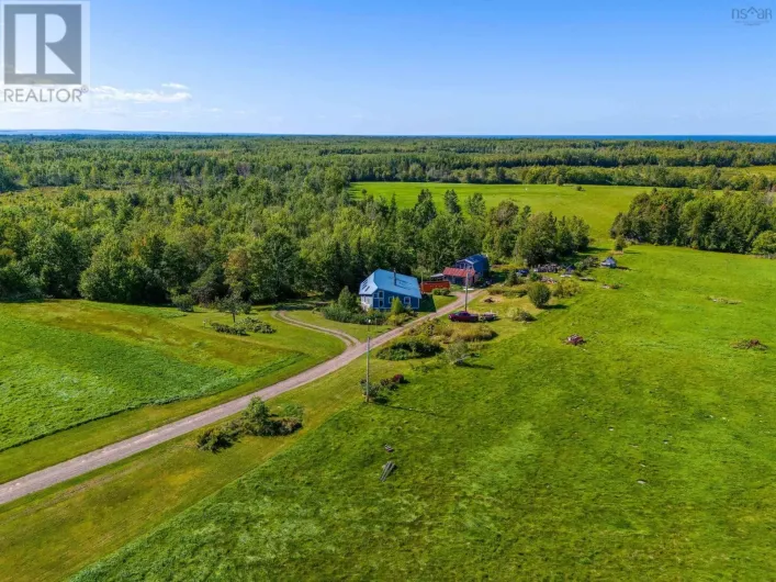 From Pictou rotary take Sunrise Trail exit, follow sunrise trail, turn left onto McAuley Road. Property on the right. Tucked away on a peaceful 25-acre property just minutes from the stunning shores of McDonalds Cove Beach, this unique and spacious home offers the perfect blend of privacy,